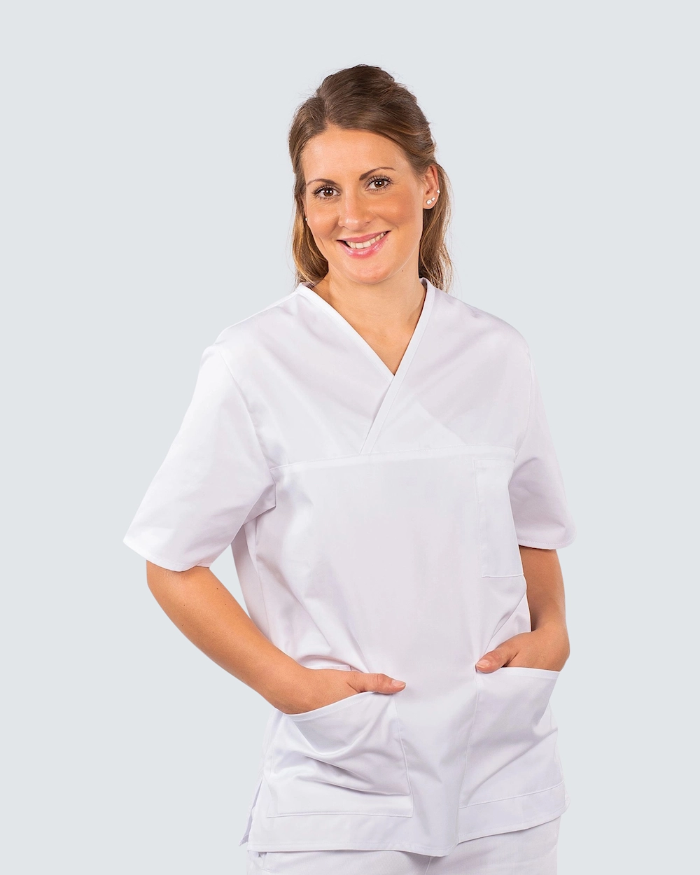 Hejco Timeless -malliston Kerry pusero unisex-mallissa tilavalla istuvuudella. V-kaula, sivuhalkio ja lyhythihainen. Kaksi sivutaskua, rintatasku ja puhelintasku. Avainpaikka. Sopii terveydenhuollon, hammas- ja eläintenhoidon työntekijöille. Materiaali on OEKO-TEX-sertifioitu, mikä tarkoittaa, että se ei sisällä kemikaaleja terveydelle haitallisina pitoisuuksina.
