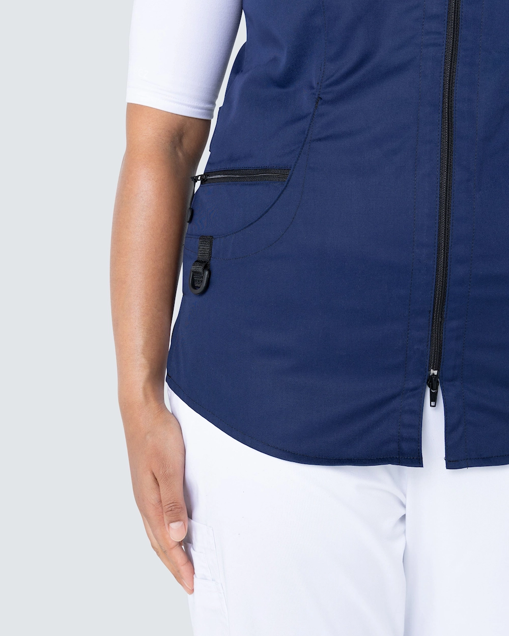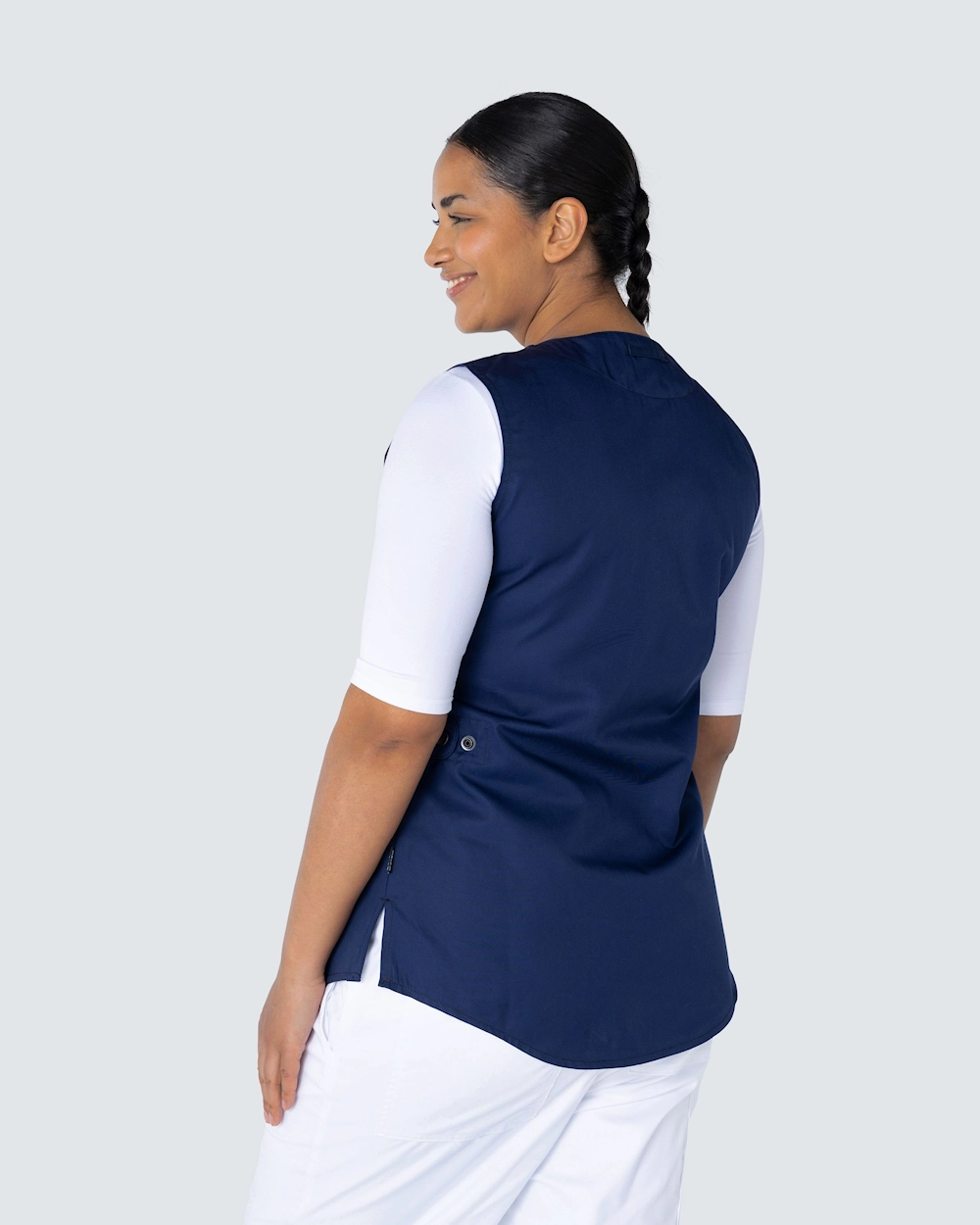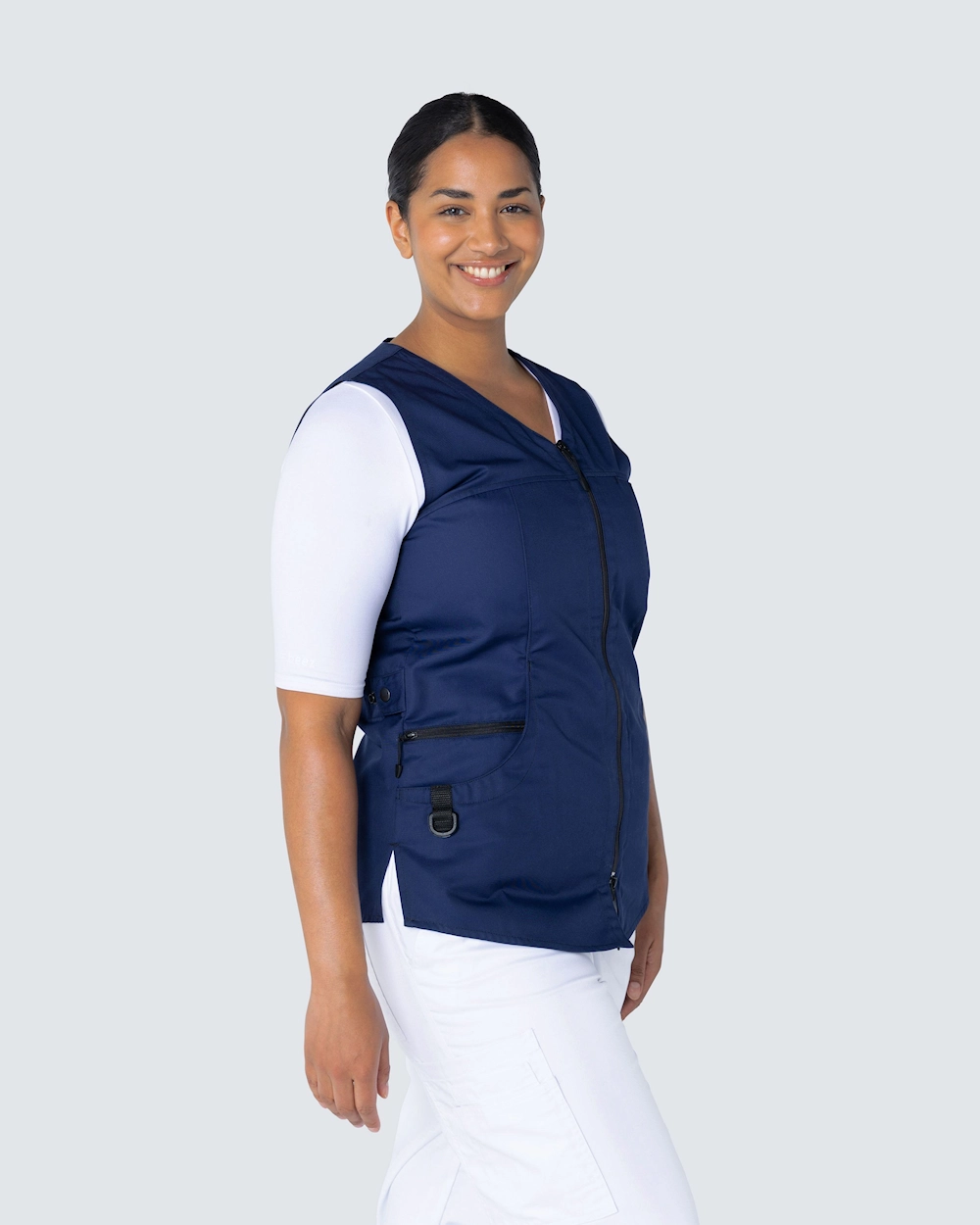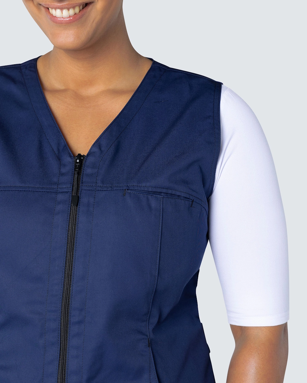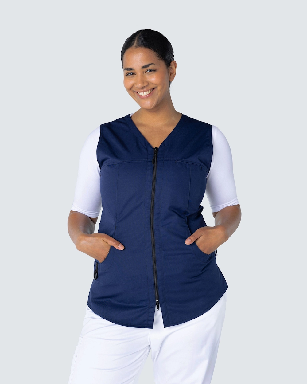 Tyylikäs ja funktionaalinen naisten liivi. Lucy liivi on hieman vartalonmukainen malli, sivuilla voit kätevästi säätää vyötärön leveyttä. Yhdistä johonkin kivaan t-paitaamme ja sekä mukaviin housuihimme ja olet valmis uuteen työpäivään. Keskiselän pituus 75 cm koko C38/40.V-pääntieVetoketjuRintataskuEtutaskutPuhelintaskuD-lenkkiSivuhalkiotNormaali istuvuus