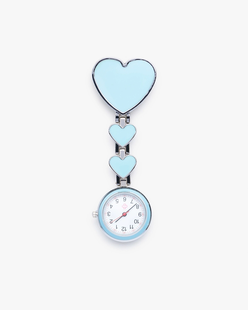 Tämän tyylikkään hoitajan kellon avulla voit helposti seurata aikaa, laskea sekunteja ja ajoittaa hoitotyötä. Kellossa on lenkki ruostumattomasta teräksestä, jossa on kolme sydäntä; yksi suuri sydän ja kaksi pienempää. Kello puhdistetaan helposti käsidesillä. Voit helposti kiinnittää hoitajan kellosi tunikaan tai puseroon. Tämä sopii erinomaisesti sinulle terveydenhuollossa työskentelevälle, joka ei voi käyttää rannekelloa työvuoron aikana. Yhdistä sairaanhoitajan kello muihin värikkäisiin asusteisiin, kuten kynätaskuihin, nimikyltteihin tai värikkäisiin tukisukkiin henkilökohtaisen työasun aikaansaamiseksi.