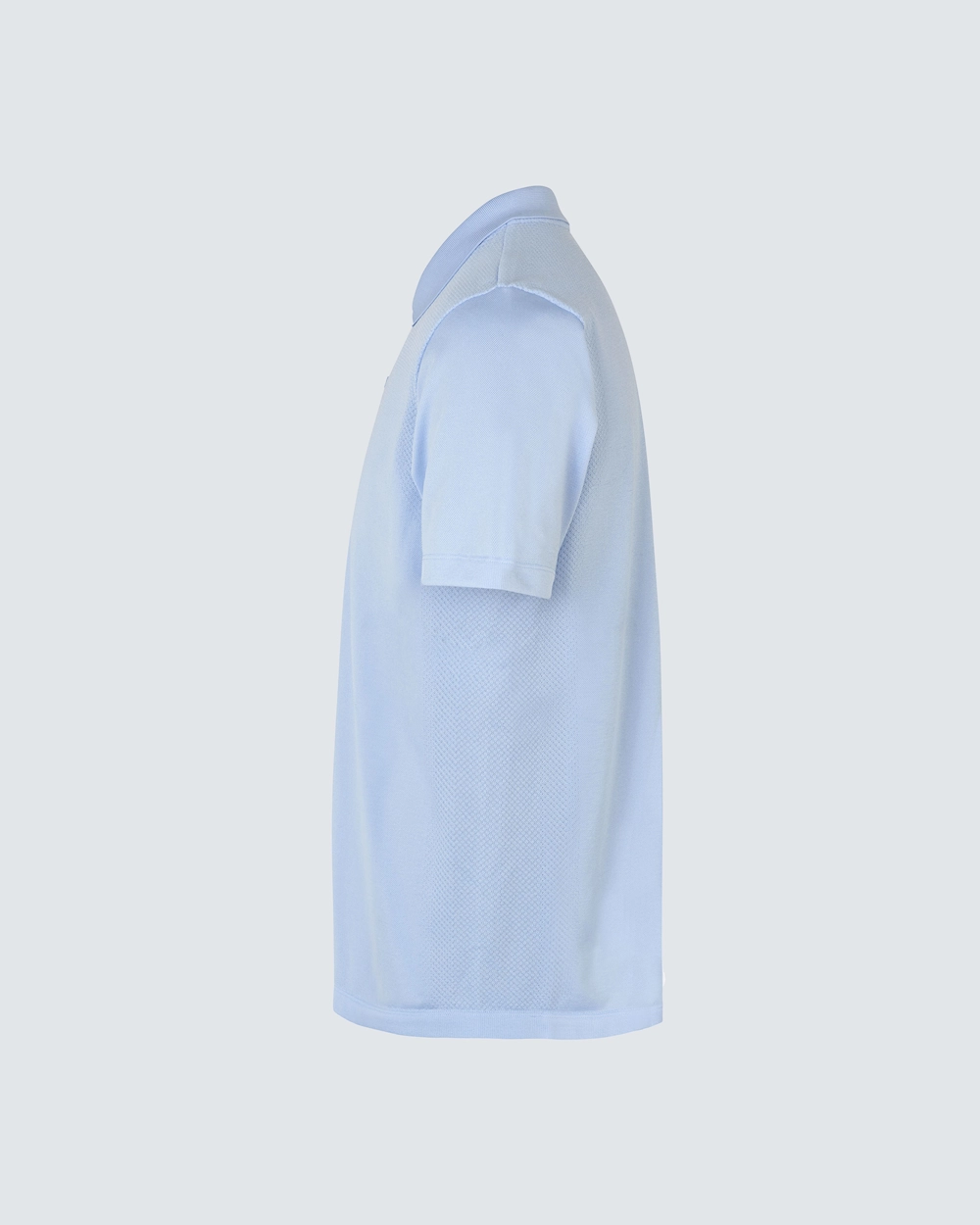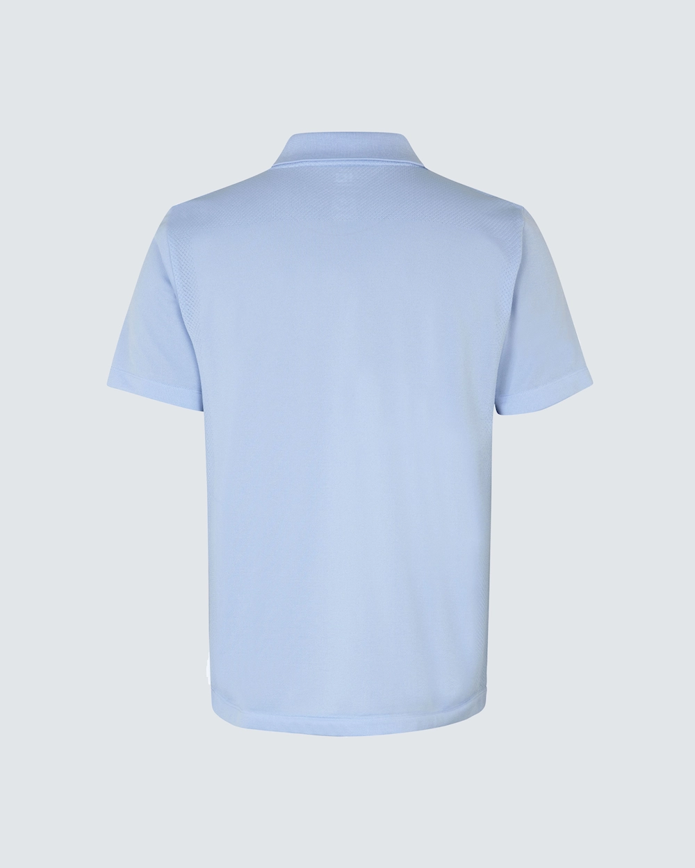 - Urheilullinen miesten piqué, jossa on saumaton muotoilu.