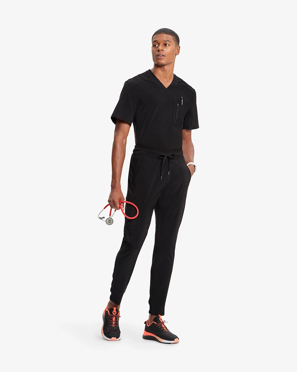 Miesten jogger-housut, joissa on moderni istuvuus ja keskivyötärö, jotka on suunniteltu tarjoamaan mukavuutta ja liikkumisen vapautta terveydenhuollon työntekijöille pitkien työvuorojen aikana. Viisi käytännöllistä taskua, joista kolme vetoketjullista ja älykäs cargo-tasku, jossa on matkapuhelintasku, helpottavat työvälineiden järjestämistä. Housuissa on kylkilistahihansuut, kosteutta siirtävä PROTX2-teknologia, tehokas hajunpoisto ja 4-suuntainen joustavuus.