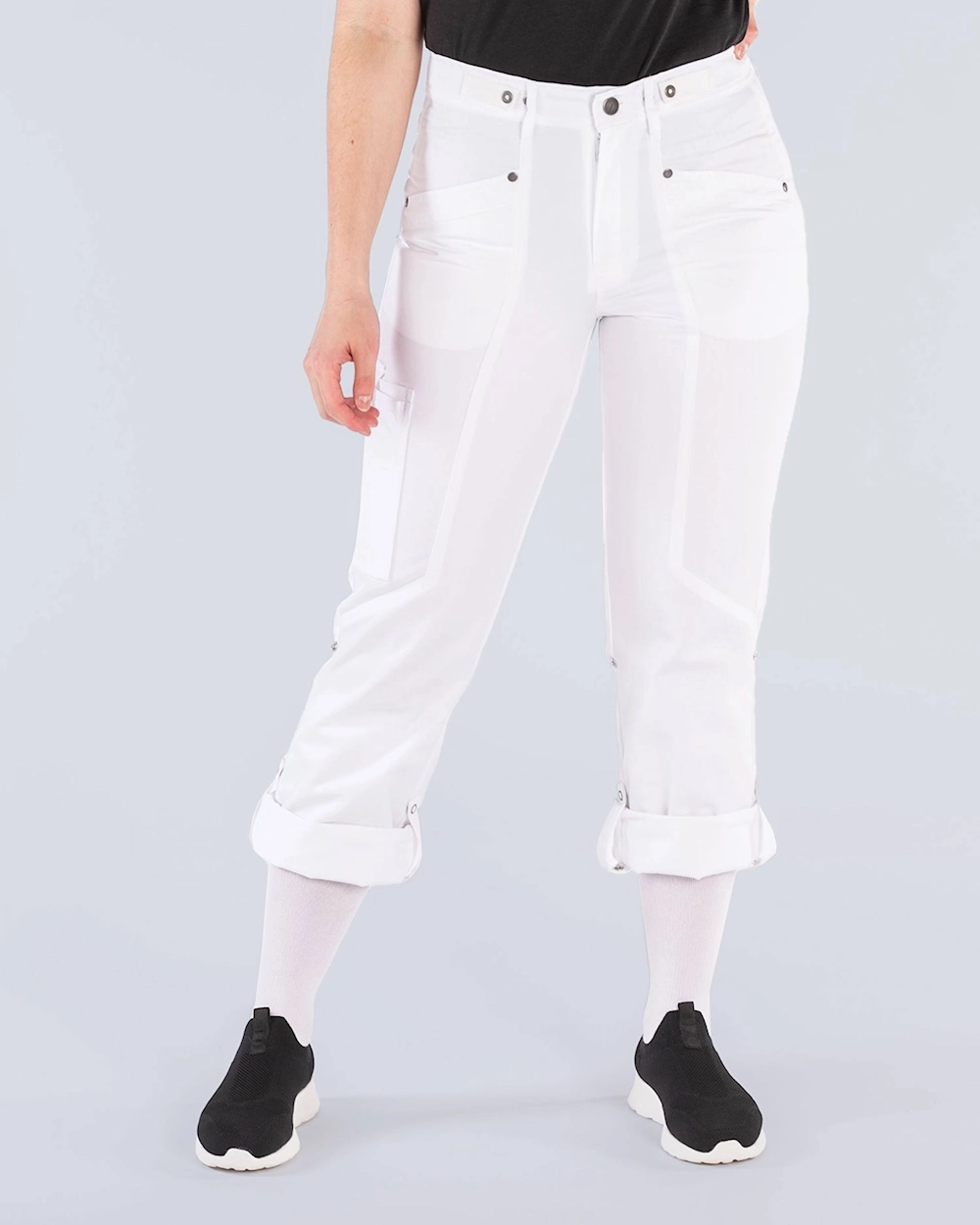 Strech työhousut säädettävällä vyötäröllä. Käytännölliset sekä tilavat taskut. Säädettävä jalkapituus tekee housuista käytännöllisen sekä ympärivuoden käyttöisen.