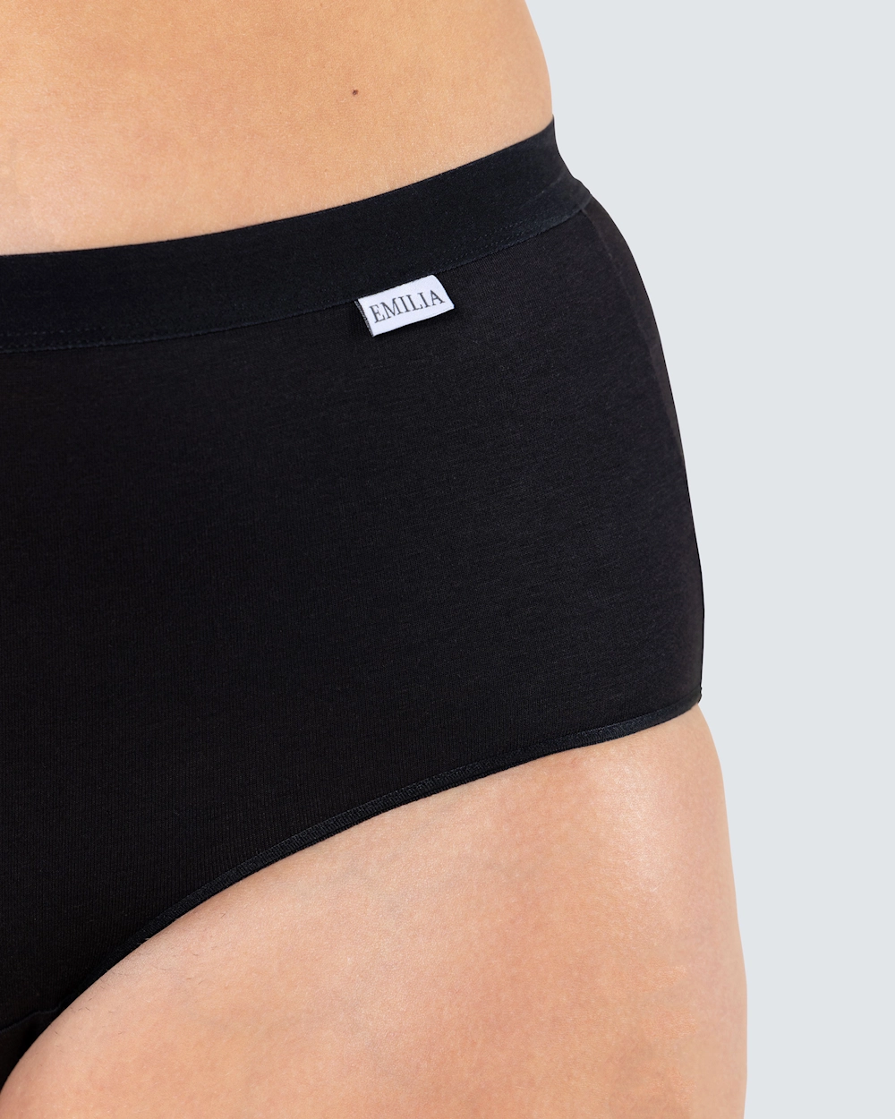 Pehmeät ja joustavat bambualushousut korkealla vyötäröllä. Bambulla on kosteutta ja lämpötilaa sääteleviä ominaisuuksia, ja sen pyöreät, sileät kuidut tuntuvat miellyttävältä myös herkällä iholla.