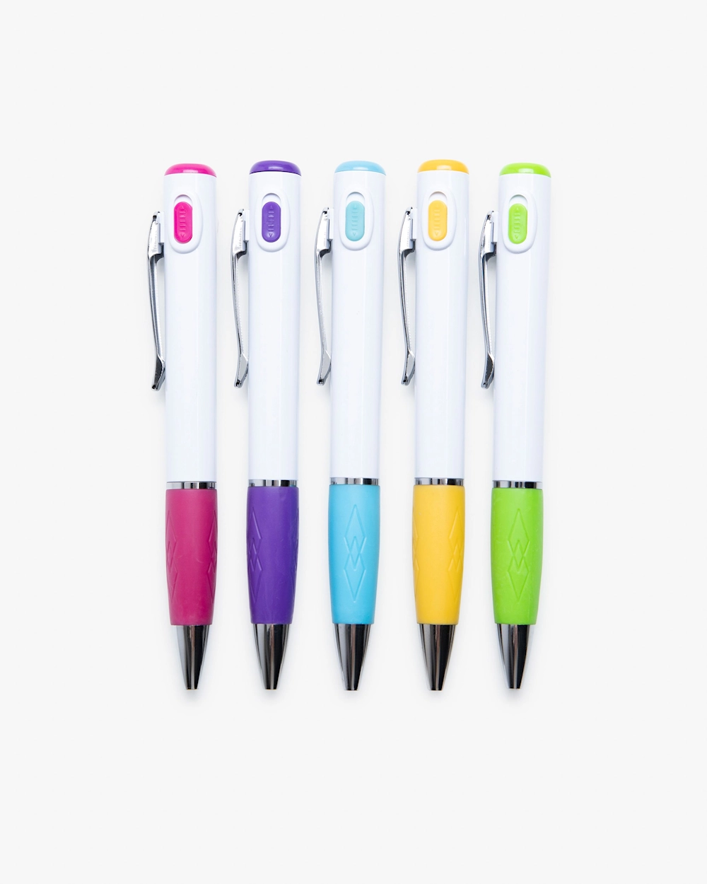 Monitoimikynä, jossa mustekynä ja lamppu yhdessä. Musta muste.
