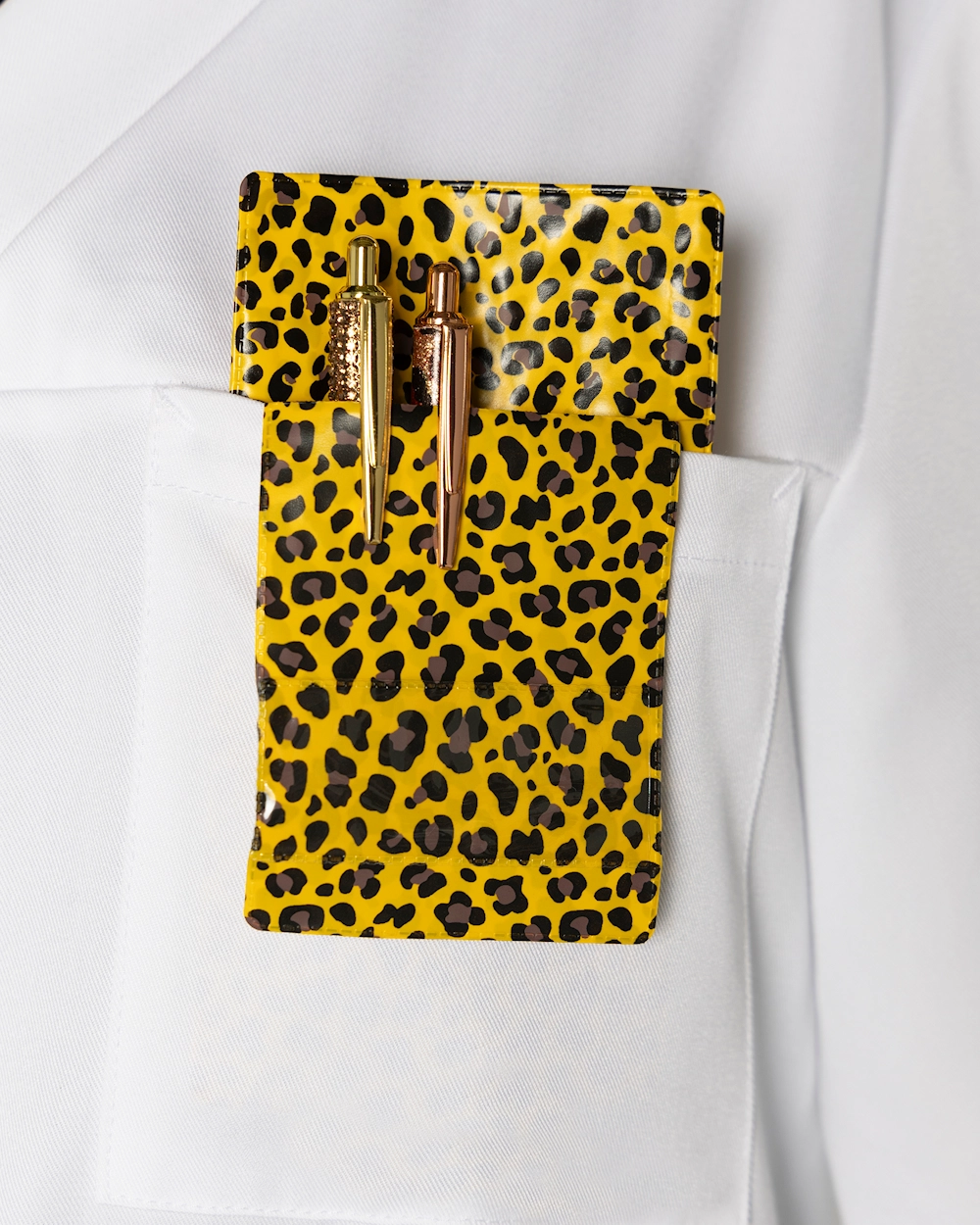 Värikäs muovinen kynätasku, joka takaa, että kynät eivät katoa ja että mustevuodot eivät likaa vaatteita. Kätevä tapa pitää kynä aina lähettyvilläsi. Kynätaskun edessä on tasku nimikyltille.