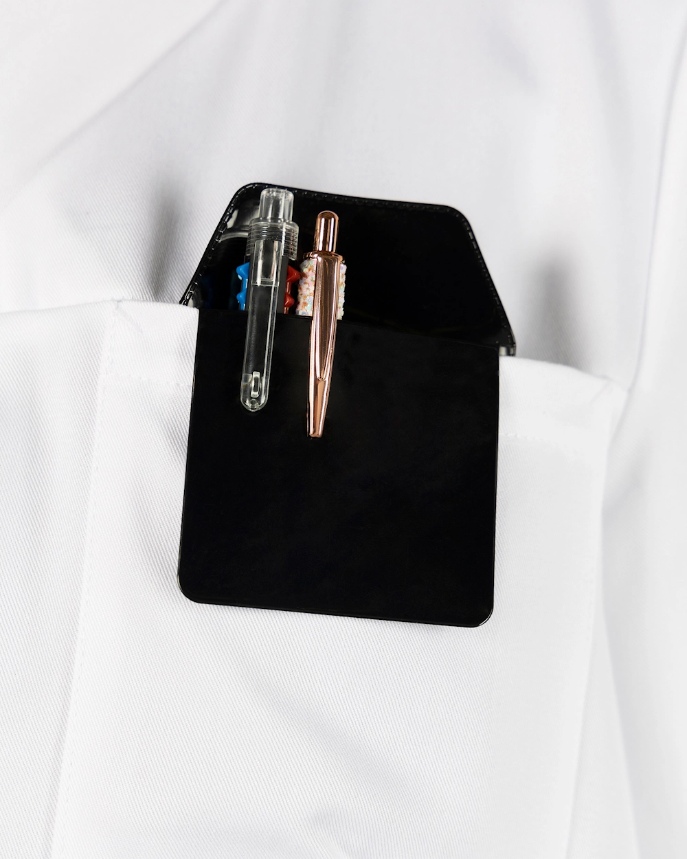 Kestävä kynätasku, joka suojaa musteen vuotamiselta, täydellinen hoitajille. Tässä kestävässä lisävarusteessa yhdistyvät tyyli ja turvallisuus, ja se tuo väriä työasuun. Monien mallien ja värien ansiosta voit ilmaista persoonallisuuttasi toiminnallisuudesta tinkimättä. Täydellinen niille, jotka haluavat käytännöllisiä ja tyylikkäitä terveydenhuollon tuotteita.