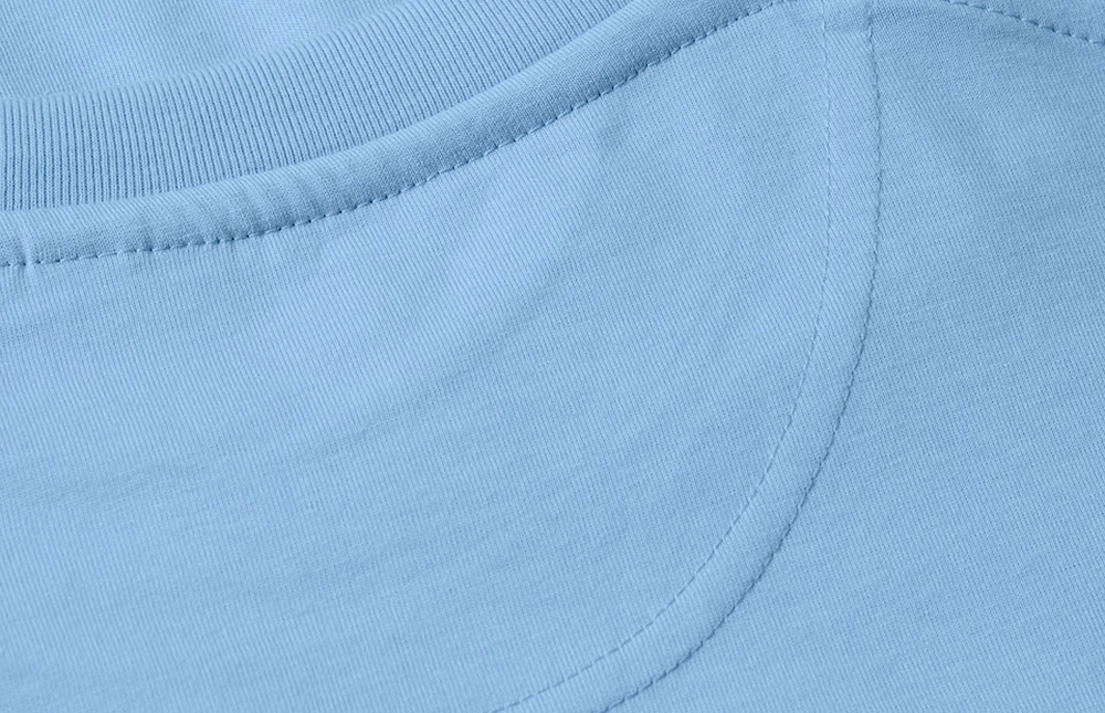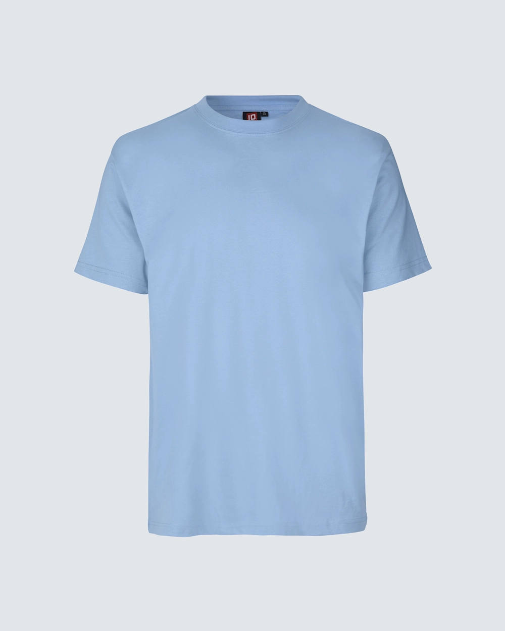 Kestävä t-paita ohuemmasta kankaasta, nelikerroksinen joustinneuleinen kaula-aukko ja niskan puolikuu lisäävät käyttömukavuutta. Vakauden ja pitkäikäisyyden varmistamiseksi kangas on esikutistettu sekä ennen värjäystä että sen jälkeen. T-paita kestää jopa 60 asteen pesun. Kankaan paino 175 g/m².
