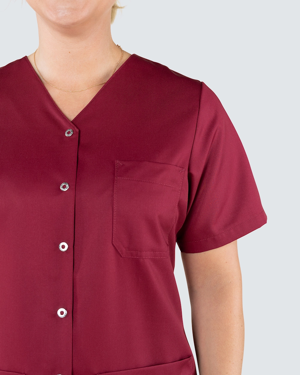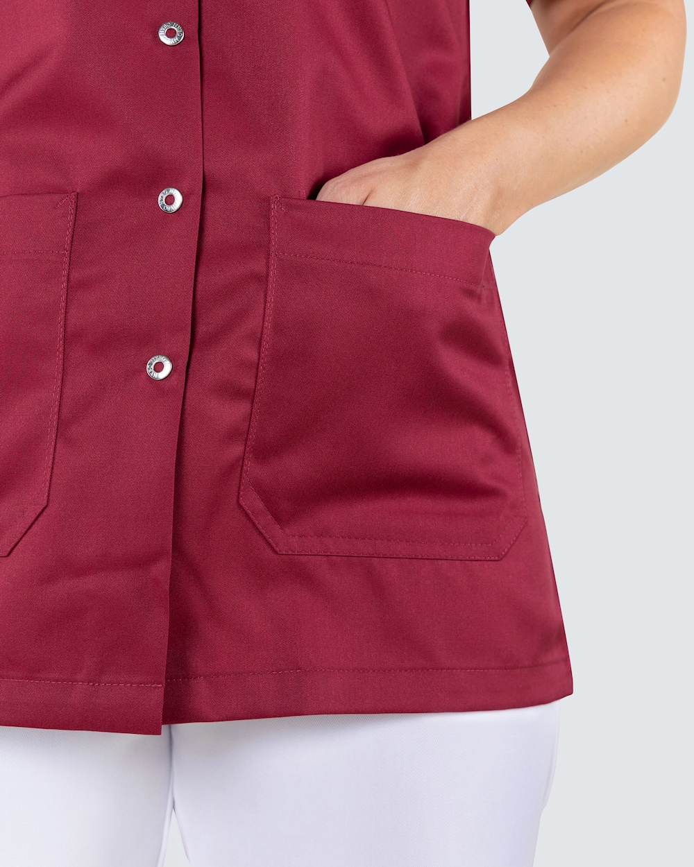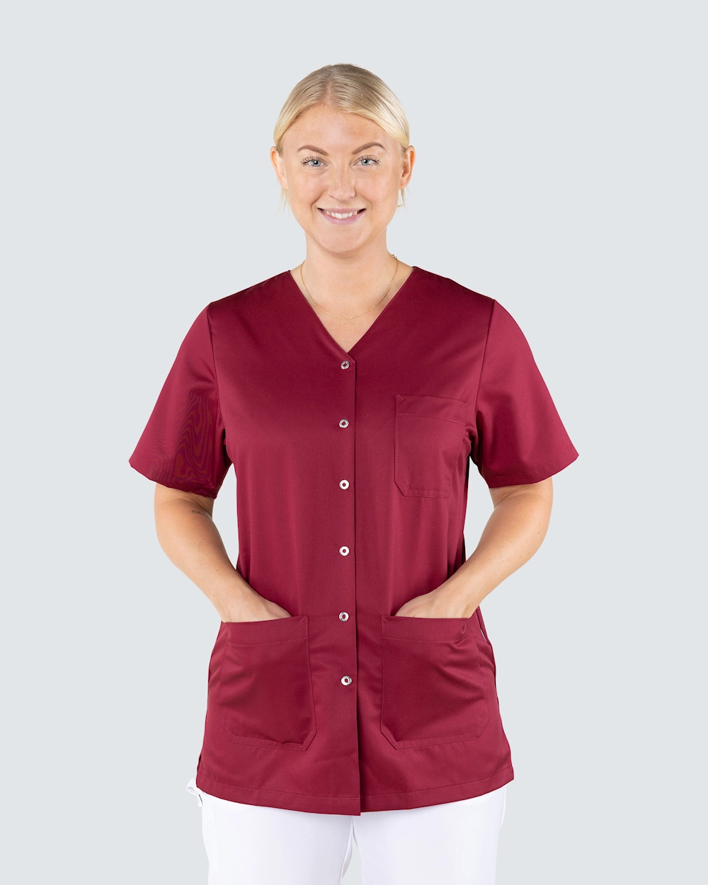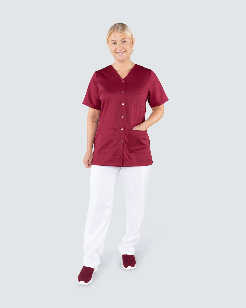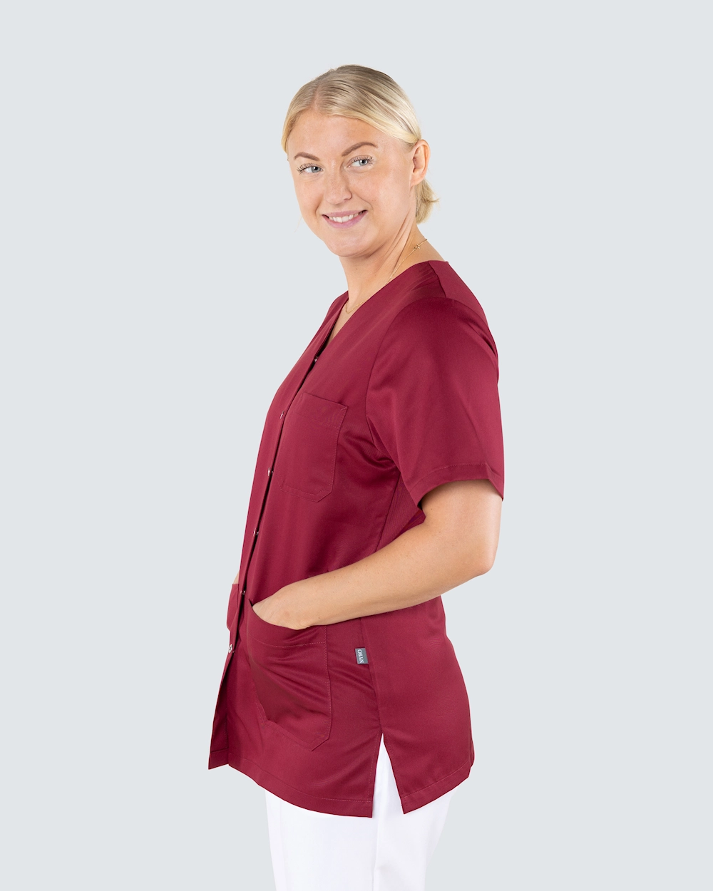 Naisten hoitotunika kevyellä kavennuksella. Käytännöllinen sulkeminen painonapeilla, mikä tekee tunikasta käytännöllisen ammatteissa, joissa likaantuu eikä halua vetää vaatetta pään yli. Tunika on valmistettu ympäristöystävällisestä Tencelistä, joka tarjoaa erittäin mukavan tunteen ja hyvän hengittävyyden.