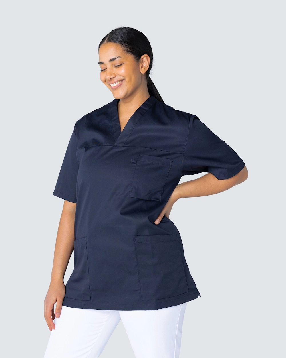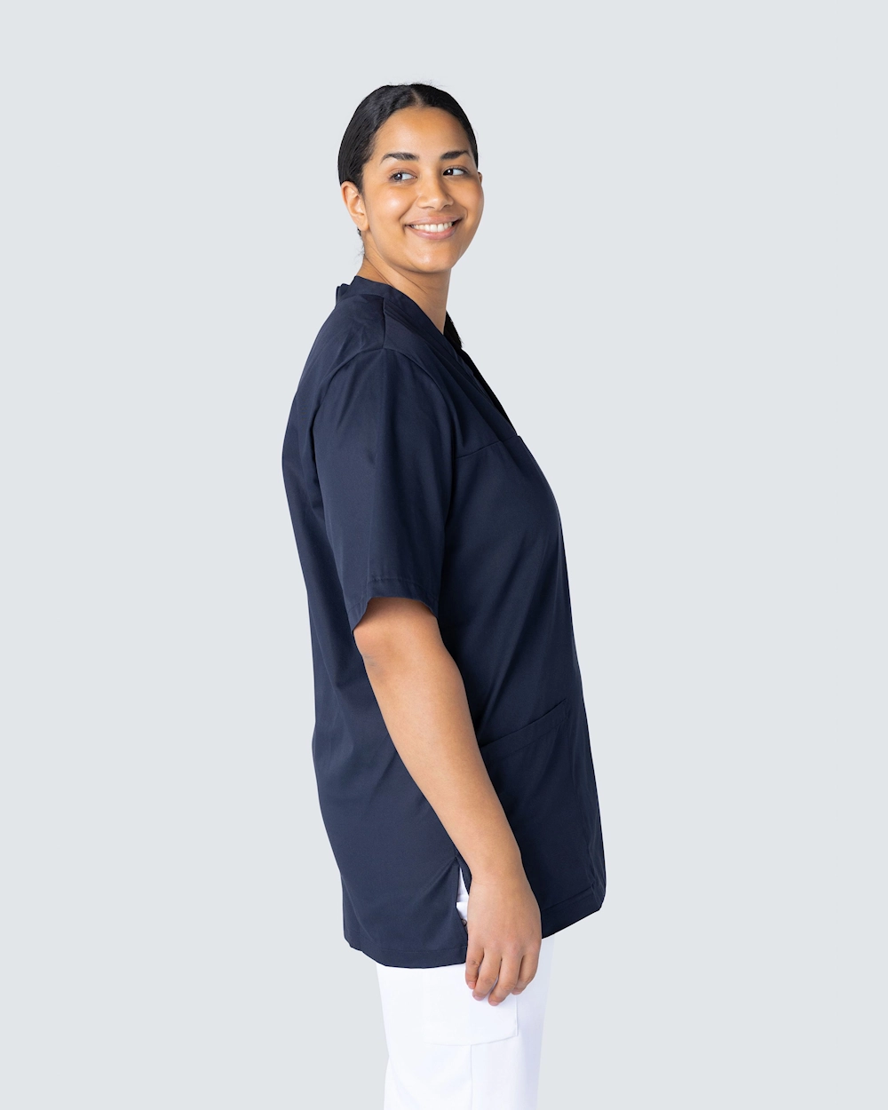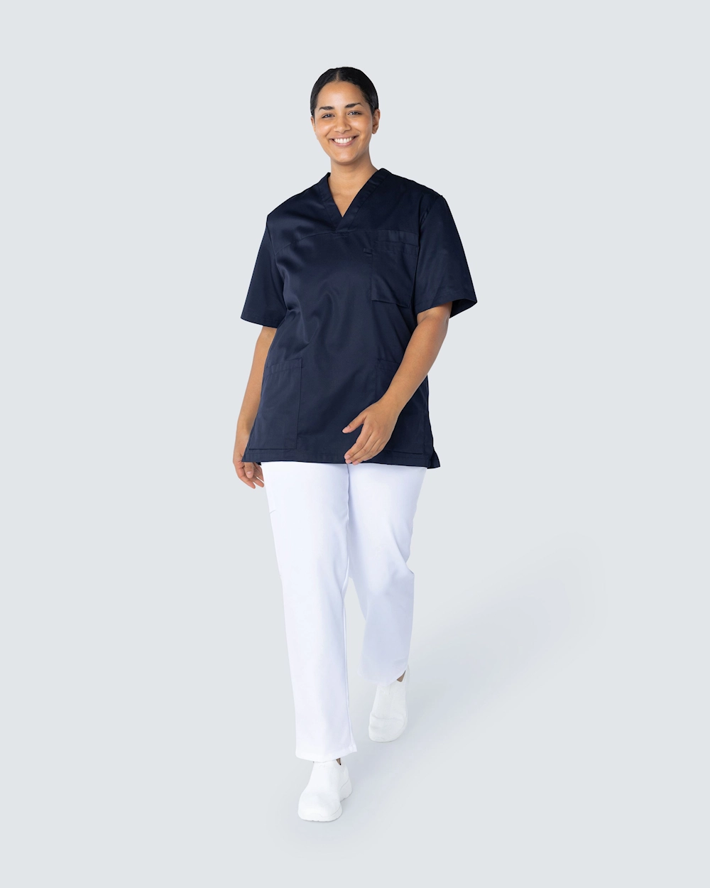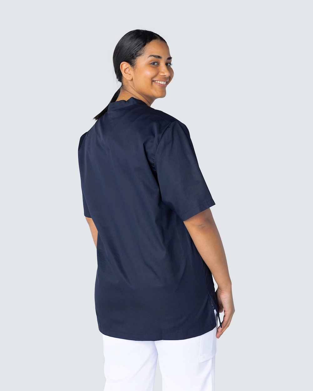 Frame on kokoelma klassisia yläosia terveydenhuollon ammattilaisille. Vaatteissa on useita hyvin harkittuja yksityiskohtia, kuten tilavat taskut ja sivuhalkiot liikkumavaran takaamiseksi. Vaatteet ovat valkoisia ja tummansinisiä, ja ne voidaan pestä 75 ° C sekä 85 °C:ssa.