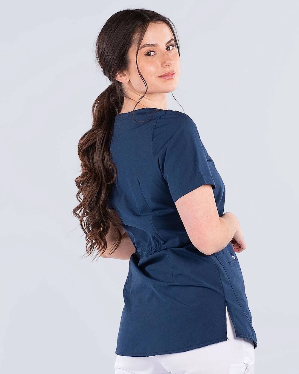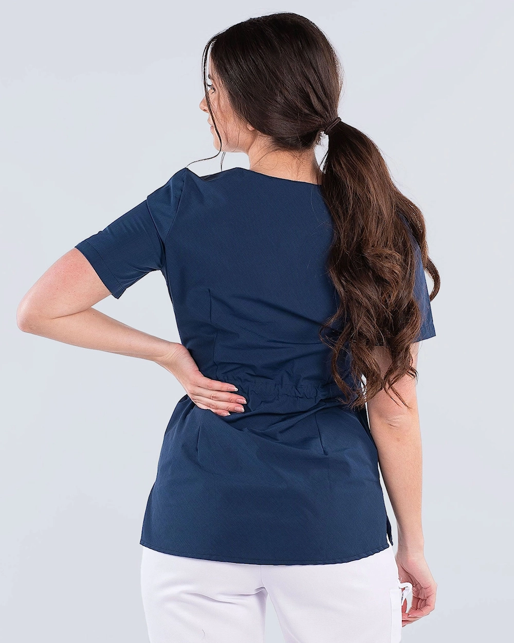 Klassinen hoitotunika v-pääntiellä ja kevyellä kavennuksella. Tunikassa on useita käteviä säilytystoimintoja: rintatasku, kaksi etutaskua, puhelintasku, avaimenperä sekä kynälenkki rintataskussa. Luomupuuvilla ja kierrätetty polyesteri antaa mukavan vaatteen, joka toimii hyvin sekä kesällä että talvella. Tunikassa on stretch-kangas takaosassa optimaalisen istuvuuden ja mukavuuden takaamiseksi.