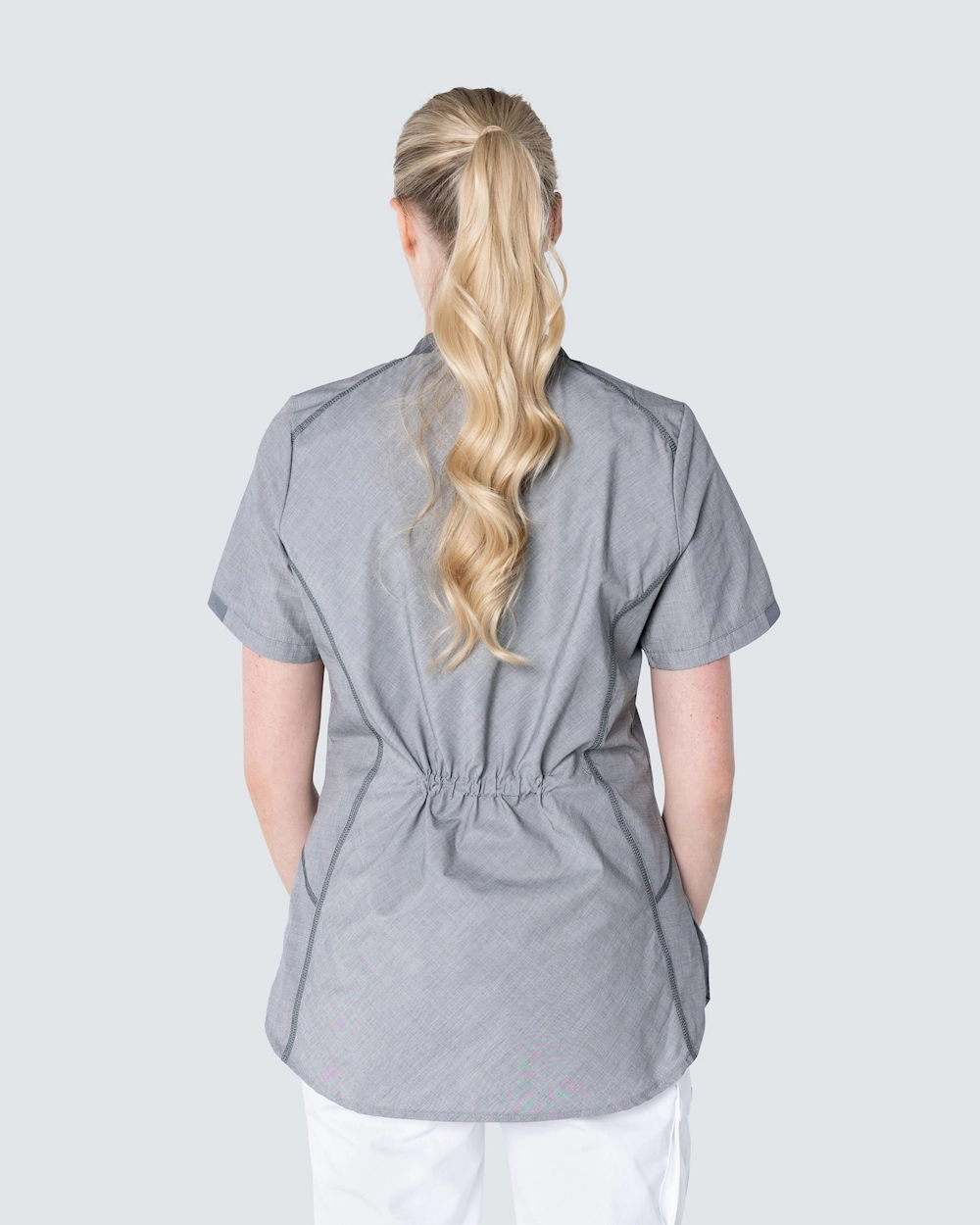 Mukava naisten pusero pyöristetyllä pääntiellä ja pehmeällä niskaresorilla. Puseron sisäpuolella on joustava resorinauha, jonka avulla voit säätää vyötärön istuvuutta. Puserossa on tilava rintatasku ja kaikissa taskuissa on painonapit.