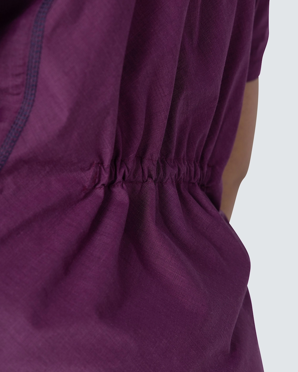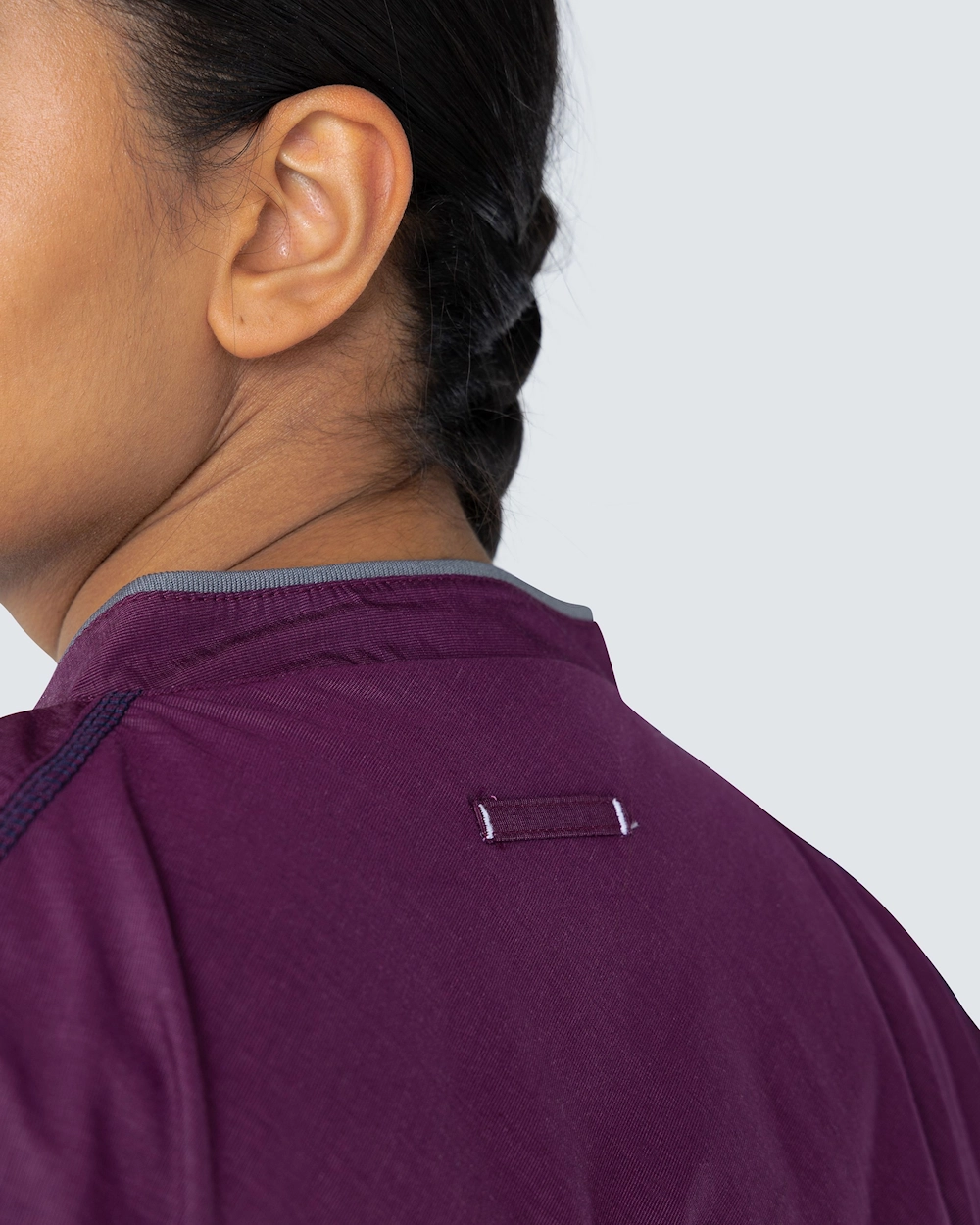 Paidassa hieman kavennettu vyötärö sekä säädettävä ja joustava selkäosa, joka antaa enemmän liikkumavaraa. Naisellinen pystykaulus ja piilotetut painonapit.