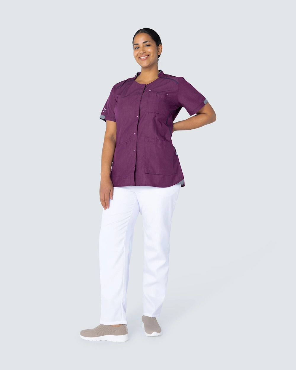 Sporty -kokoelma sisältää hoitoalalle suunniteltuja puseroita, paitoja ja liivejä, jotka ovat saaneet inspiraationsa moderneista juoksuvaatteista. Vaatteet on suunniteltu tilavalla istuvuudella ja urheilullisilla linjoilla kontrastivärisessä, joka antaa mukavan ilmeen. Sporty-kokoelman vaatteet ovat saatavilla kuudessa tyylikkäässä värissä ja ne voidaan pestä 75 °C:ssa.
