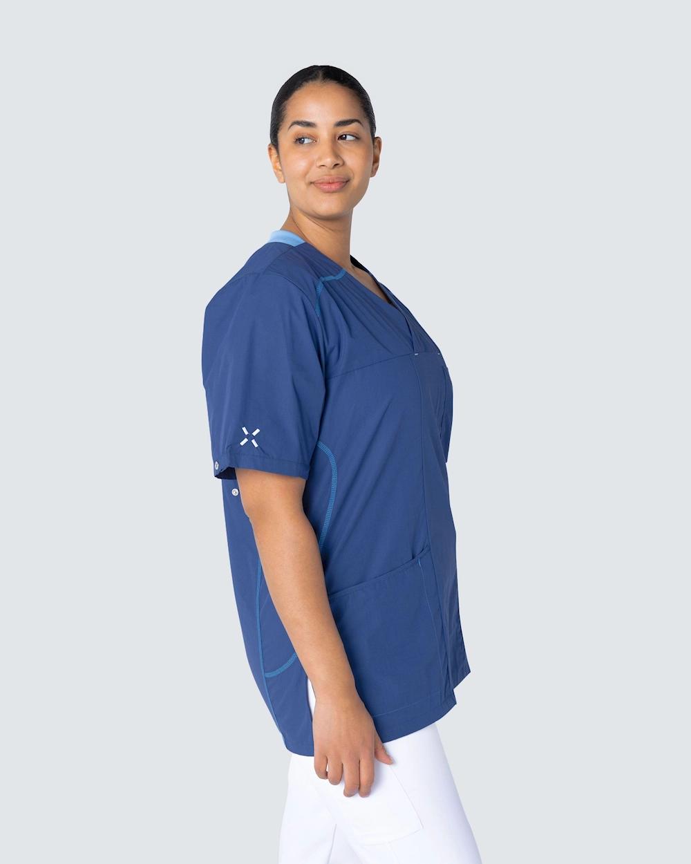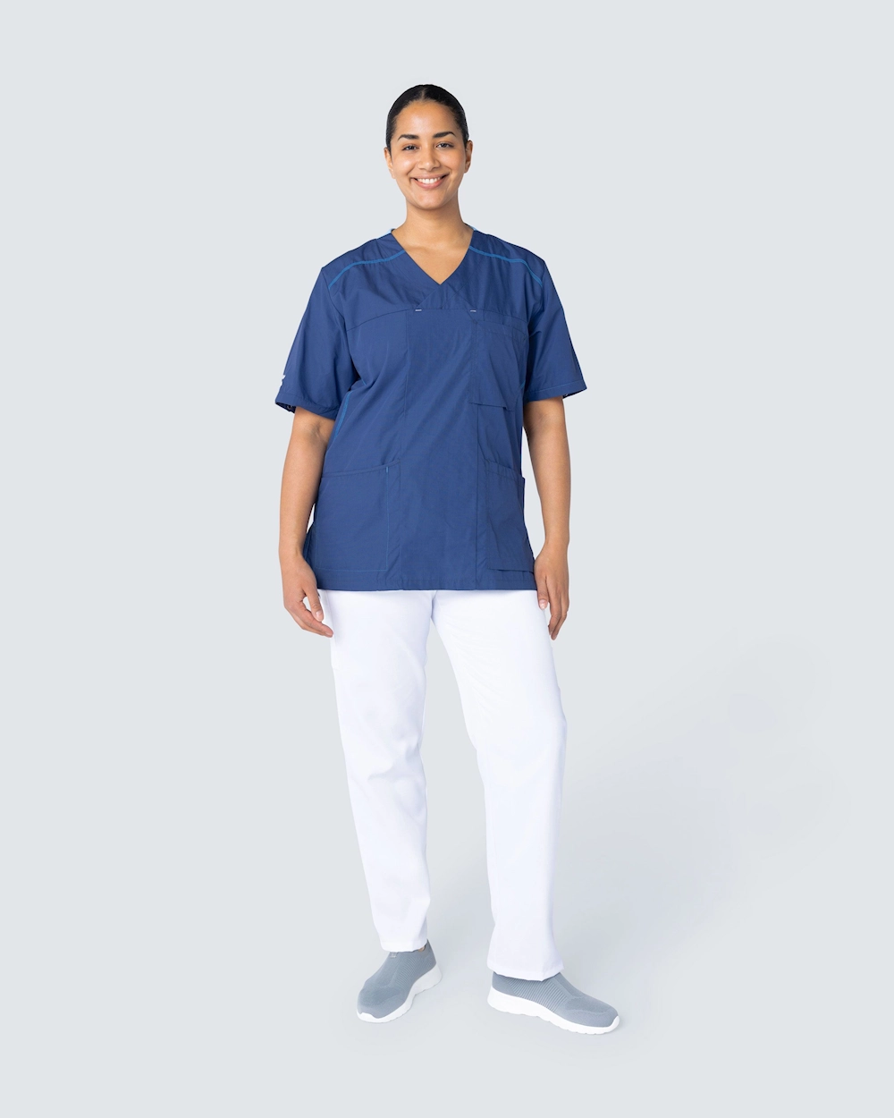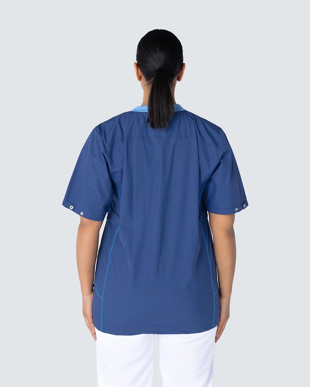 Sporty är en kollektion med vårdbussaronger, skjortor och västar inspirerad av moderna löpkläder. Plaggen är designade med en rymlig passform och med sportiga linjer i konstrastfärg som ger ett snyggt utseende. Plaggen i kollektionen Sporty finns i sex stilrena färger och kan tvättas i 75°C.