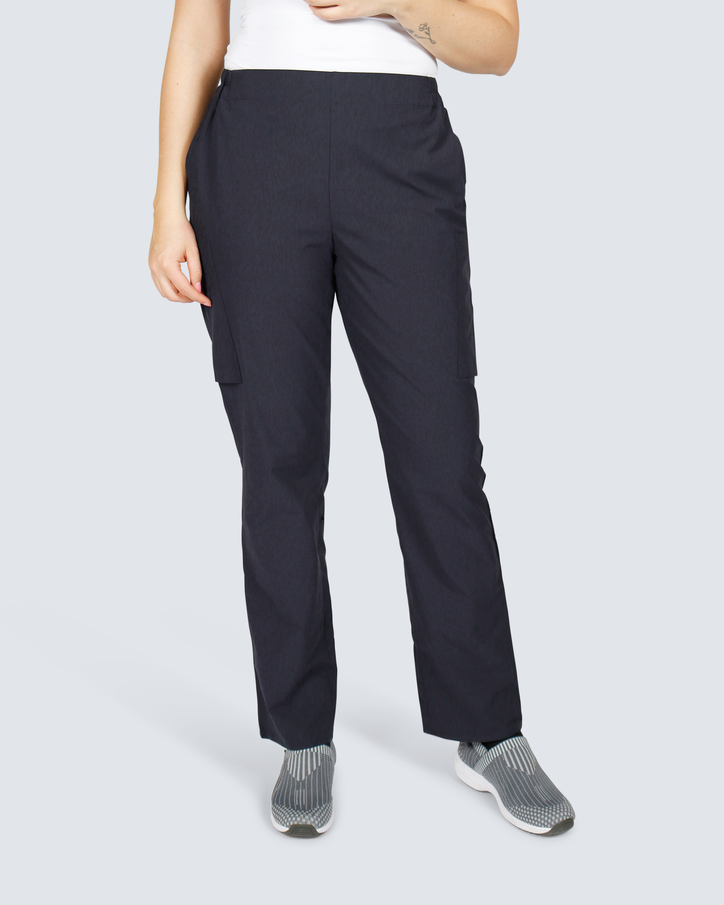 PULL-ON-työhousut, joissa on leveä joustava vyötärö ja litteä etuosa, mikä takaa tyylikkään ja mukavan istuvuuden. Normaali vyötärö ja mukava leikkaus lantiolla ja reisissä takaavat liikkumisen vapauden koko päivän ajan. Toiminnallinen malli, jossa on vyölenkit, useita syviä taskuja ja säädettävä lahkeen pituus. Valmistettu joustavasta 4-suuntaisesta stretchistä, jossa on viilentävä vaikutus ammattimaisen työmukavuuden takaamiseksi.