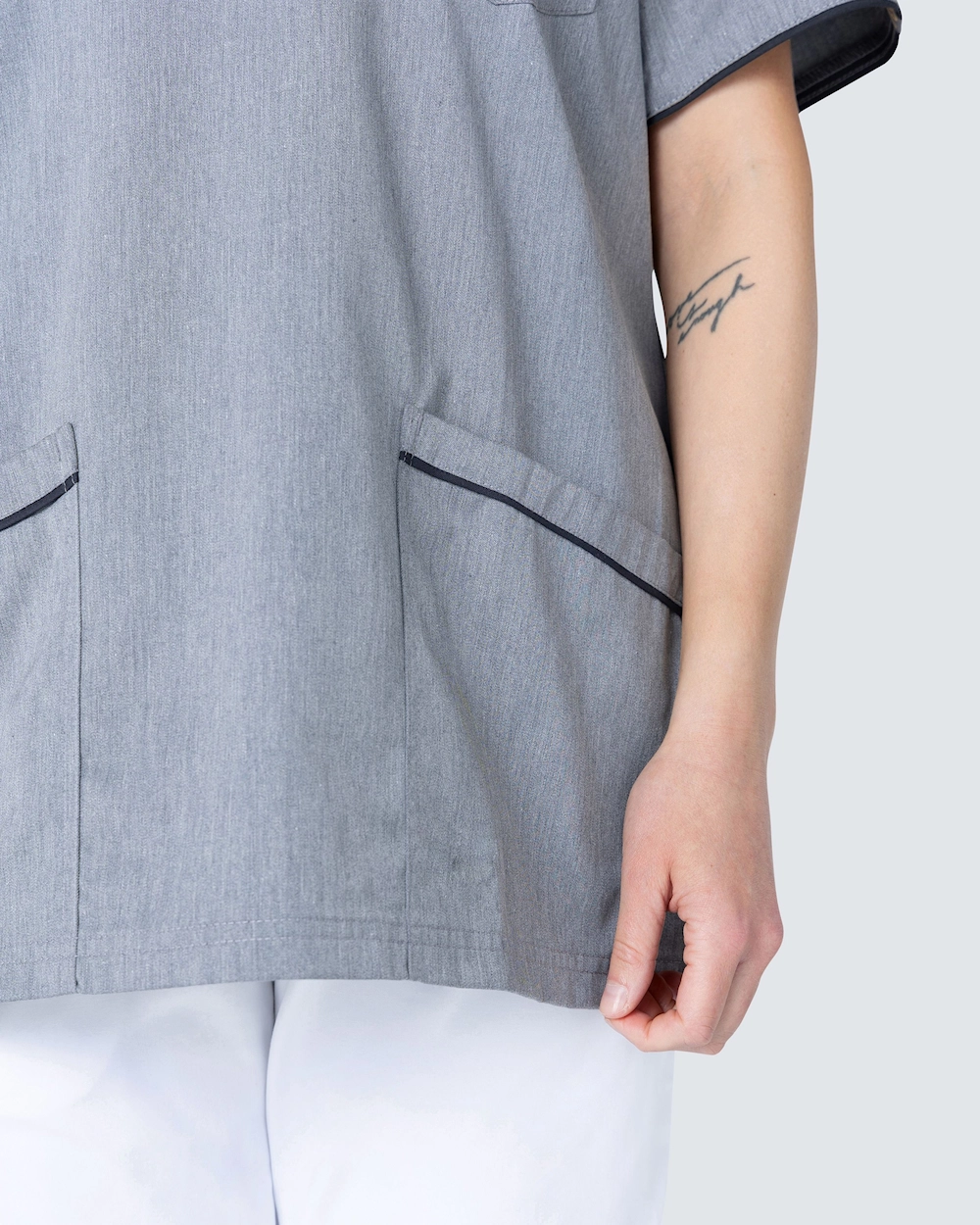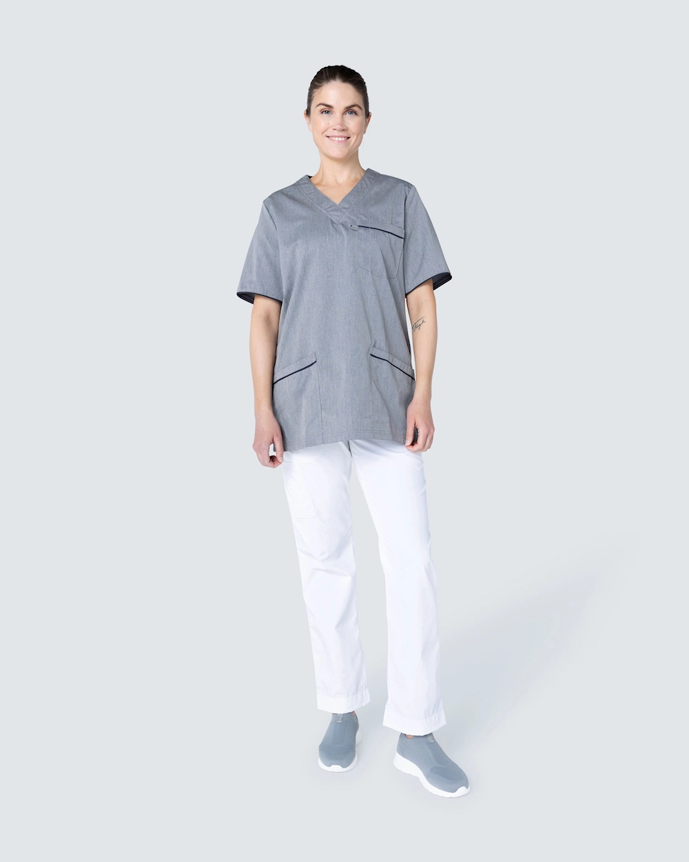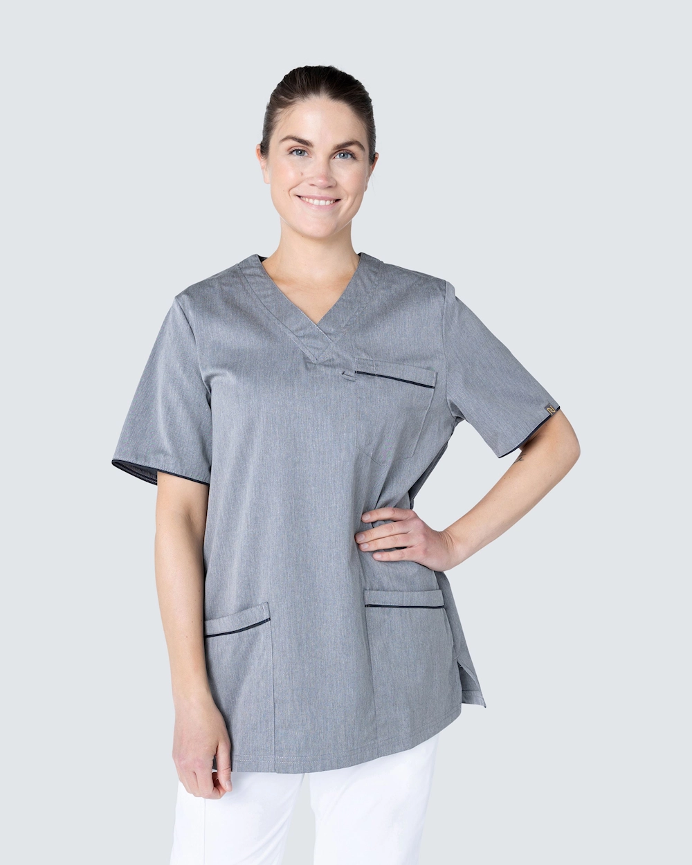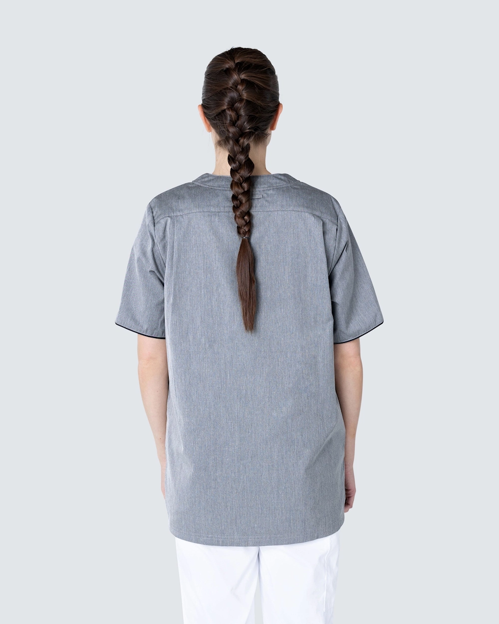 Meleerattu ja kevyt, kudottu unisex-malli lyhyillä hihoilla, v-aukolla ja sivuhalkioilla.