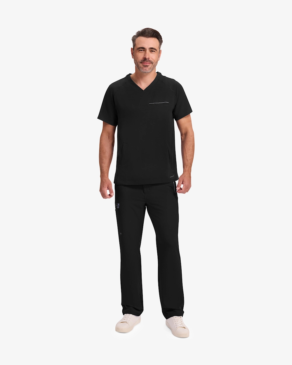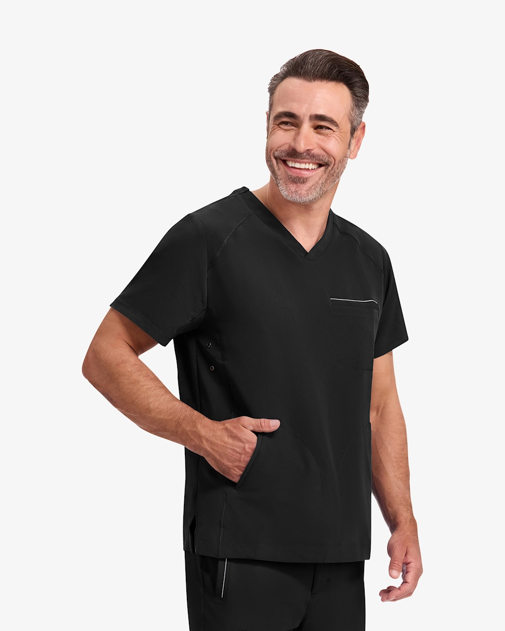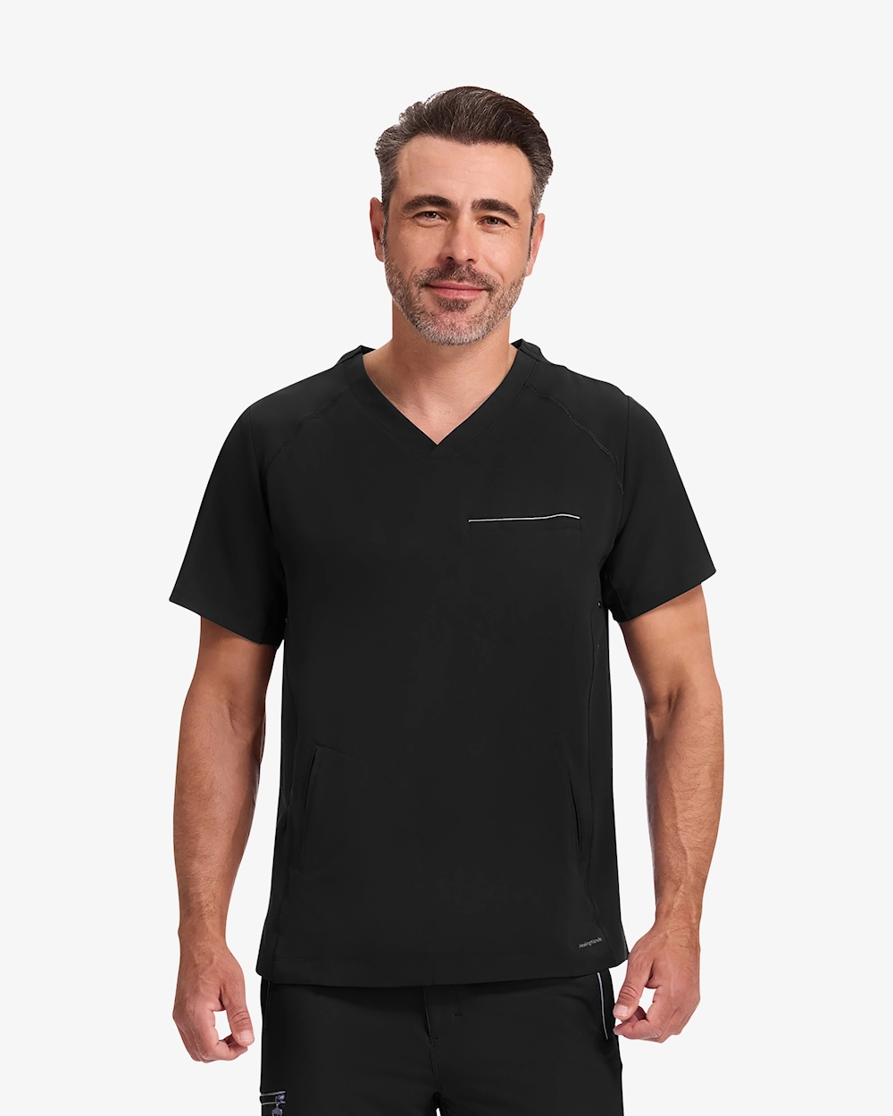 V-kaula-aukkoinen tunika, jossa on kolme käytännöllistä taskua - yksi rintatasku ja kaksi etutaskua - työvälineiden helppoa säilytystä varten intensiivisten istuntojen aikana. Siinä on 4-suuntaista stretchiä optimaalista liikkumisvapautta varten ja urheilulliset flatlock-saumat lisäävät kestävyyttä. Sivupaneeleissa olevat tyylikkäät silmukat lisäävät modernia ja persoonallista tyyliä työssä.