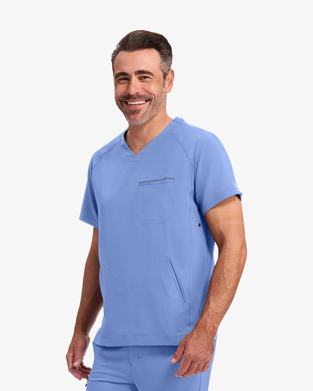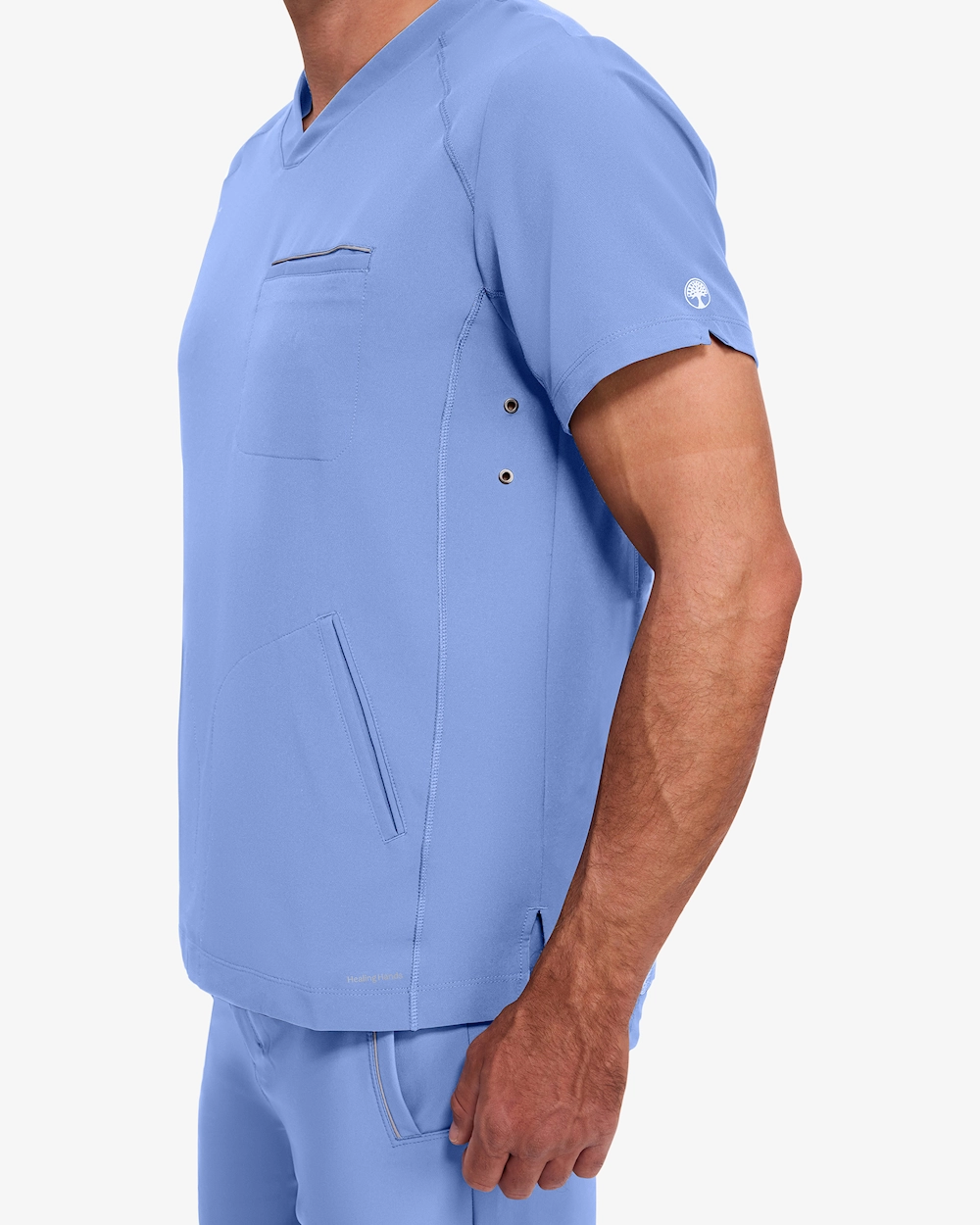 V-kaula-aukkoinen tunika, jossa on kolme käytännöllistä taskua - yksi rintatasku ja kaksi etutaskua - työvälineiden helppoa säilytystä varten intensiivisten istuntojen aikana. Siinä on 4-suuntaista stretchiä optimaalista liikkumisvapautta varten ja urheilulliset flatlock-saumat lisäävät kestävyyttä. Sivupaneeleissa olevat tyylikkäät silmukat lisäävät modernia ja persoonallista tyyliä työssä.