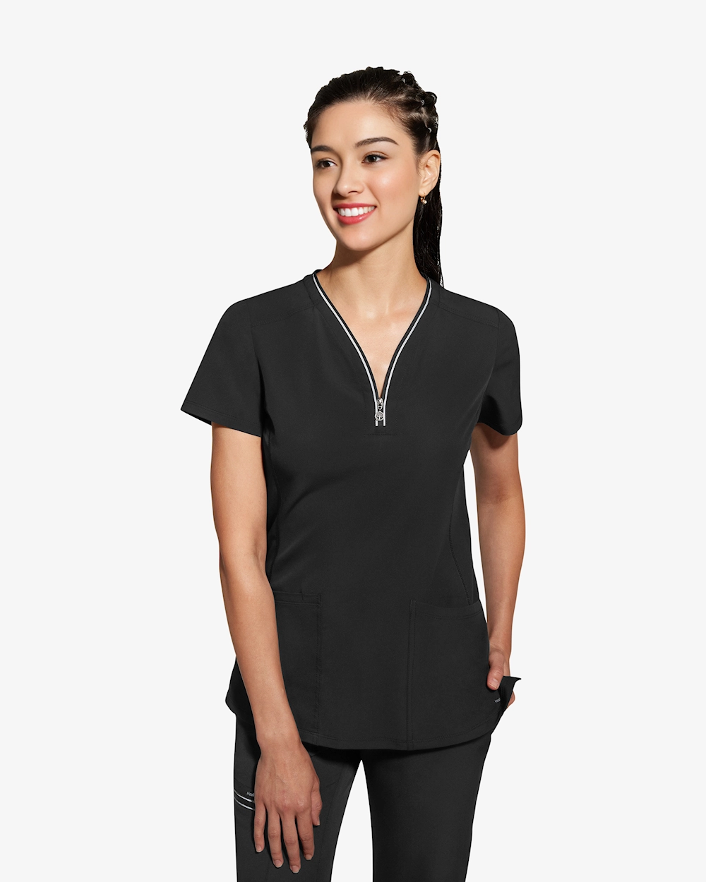 Modernisti muotoiltu tunika, jossa on neulotut sivupaneelit optimaalista istuvuutta ja lisämukavuutta varten. Kankaassa on kosteutta siirtäviä ominaisuuksia, jotka pitävät sinut kuivana ja viileänä myös intensiivisten työsessioiden aikana. Kaksi kätevää taskua tarjoavat helpon pääsyn välttämättömiin tavaroihin. Koristeelliset nauhat ja silmukat tuovat tyylikkäitä yksityiskohtia, ja 4-suuntainen stretch antaa maksimaalisen liikkumisvapauden.