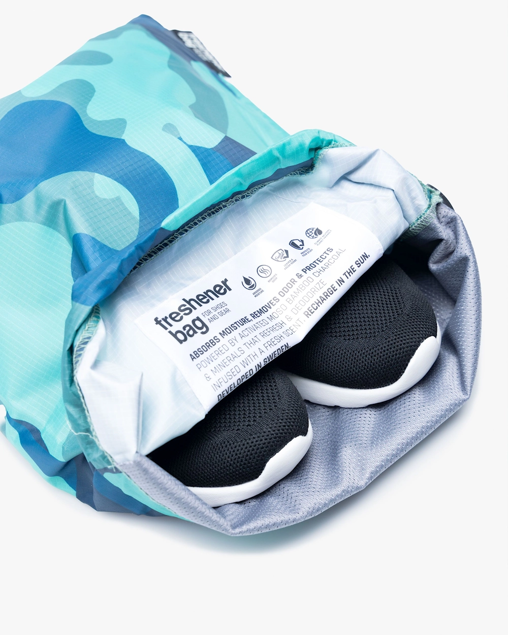 Smellwell Freshener Bag on kätevä treenilaukku, joka imee tehokkaasti kosteutta, neutralisoi ja torjuu pahoja hajuja sekä estää bakteerien kasvua. Laukkua voidaan käyttää esimerkiksi treenivaatteiden ja -kenkien säilyttämiseen. Smellwell Freshener Bag -laukulla on muuttumaton kosteuden- ja hajunimukyky jopa kahden vuoden ajan, mutta se säilyttää hajuja neutraloivan ominaisuutensa myös sen jälkeen. Käännä pussi nurinpäin ja aseta se aurinkoon muutaman kerran vuodessa, jotta vaikutus palautuu.
