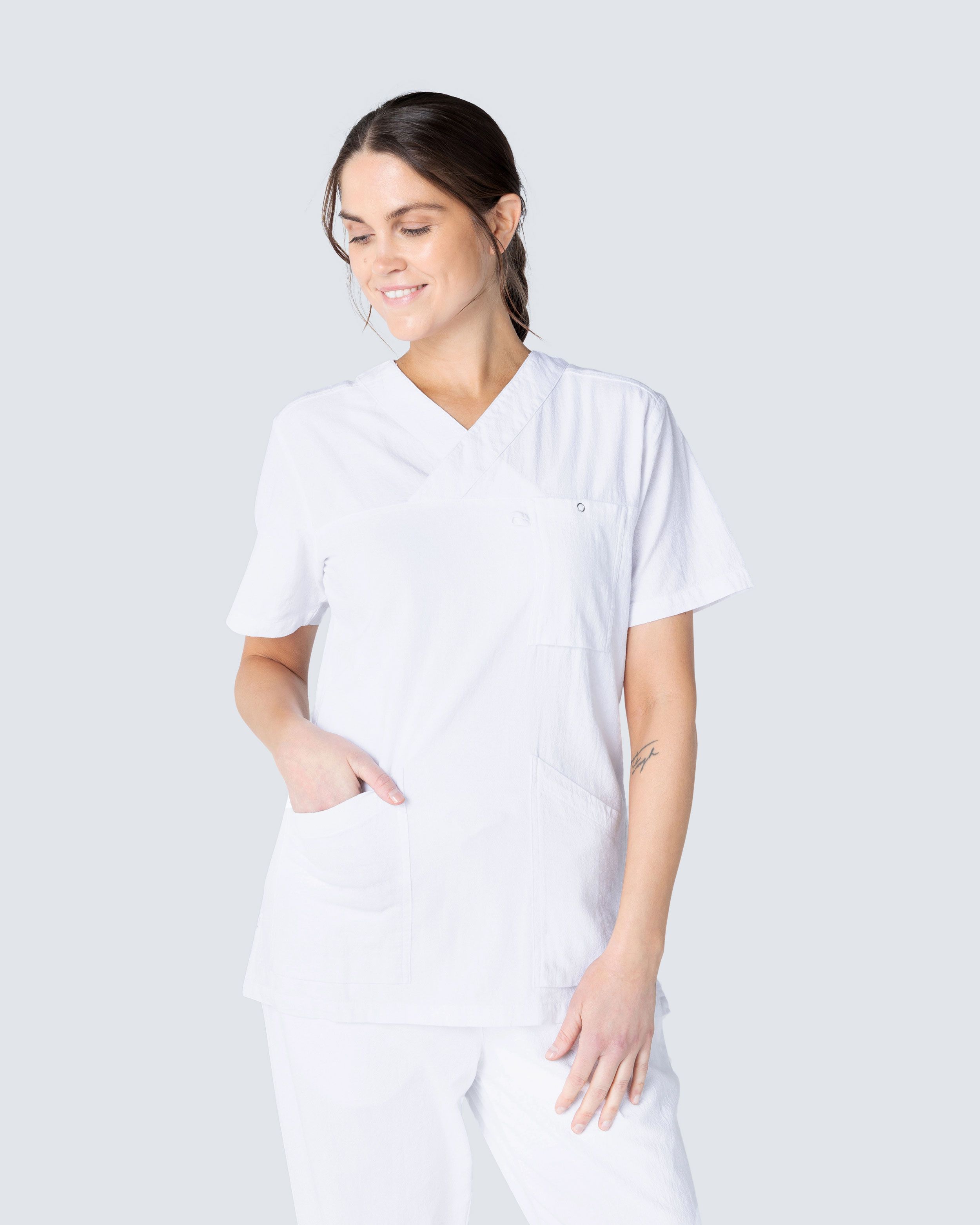 Tämän kokoelman vaatteet on valmistettu 100% poimutetusta puuvillasta, joka antaa miellyttävän tunteen. Rakenne auttaa vähentämään huollon tarvetta, kuten silitystä. Osa malliston vaatteista on GOTS-sertifioituja, mikä tarkoittaa, että puuvilla on 100% luonnonmukaista. Vaatteet voidaan pestä 60C ja 85C lämpötilassa, katso vaatteen ohjeet oikean pesuohjeen suhteen.