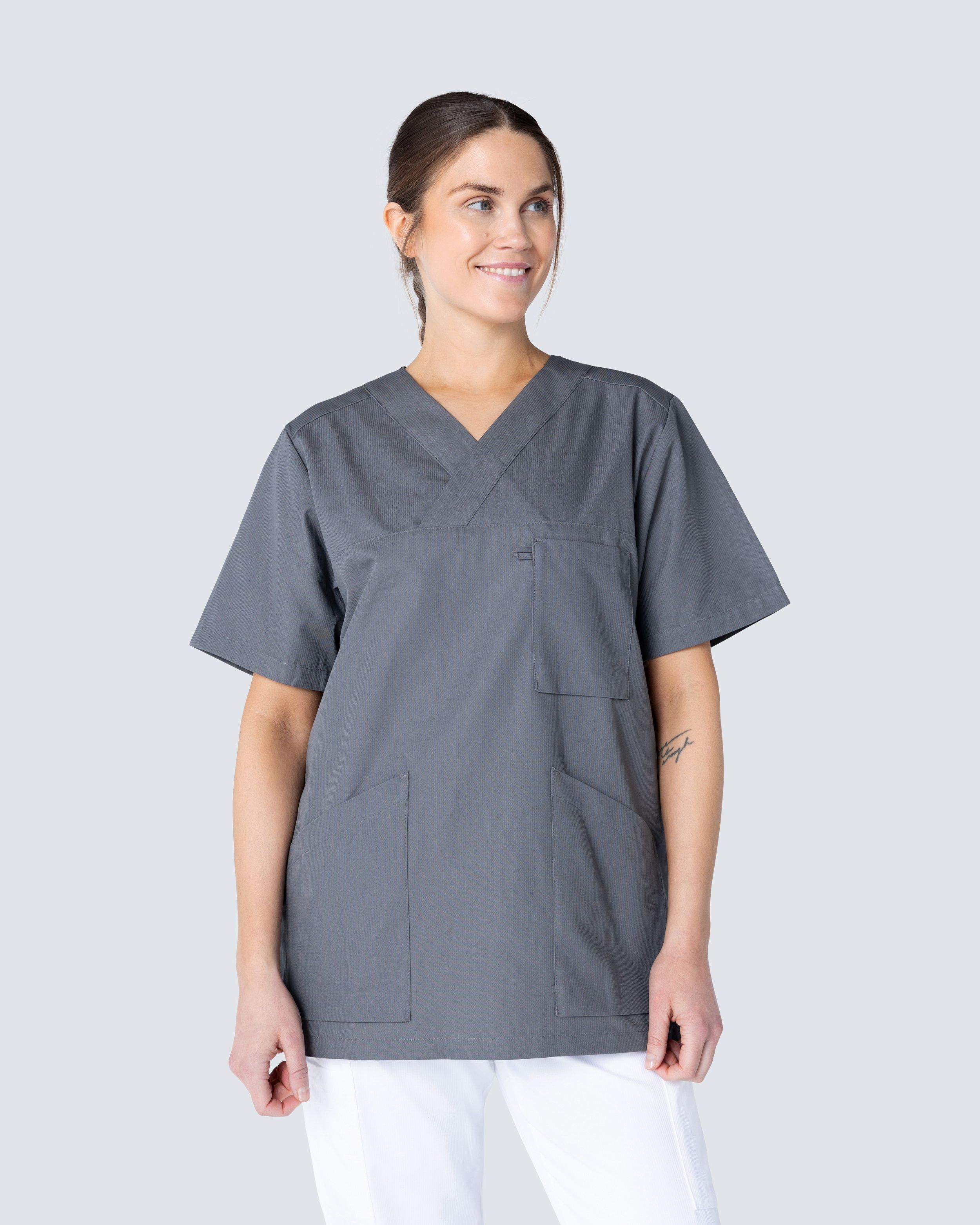 - Bussarong i unisexmodell V-hals Rymlig