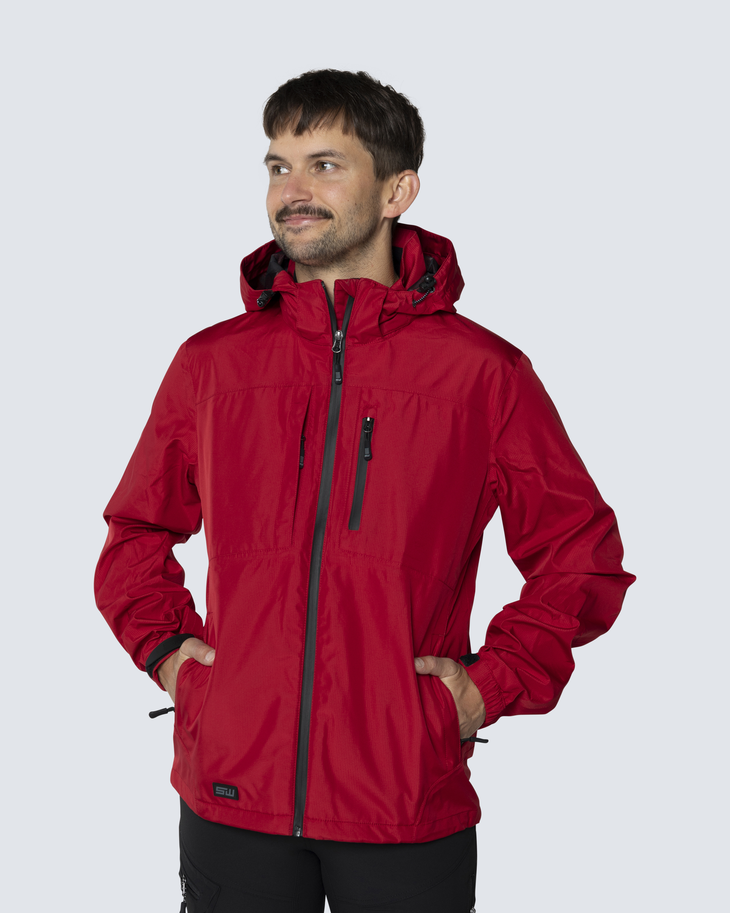 Kätevä, monikäyttöinen, tuulen- ja vedenpitävä kuoritakki. Valmistettu polyesteri-ripstop-materiaalista, joka tekee kankaasta vahvan ja kestävämmän. Säädettävä ja irrotettava huppu. Kumimerkki helmassa. Kuminauhat hihojen säätöä varten.