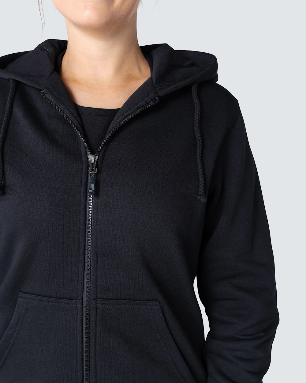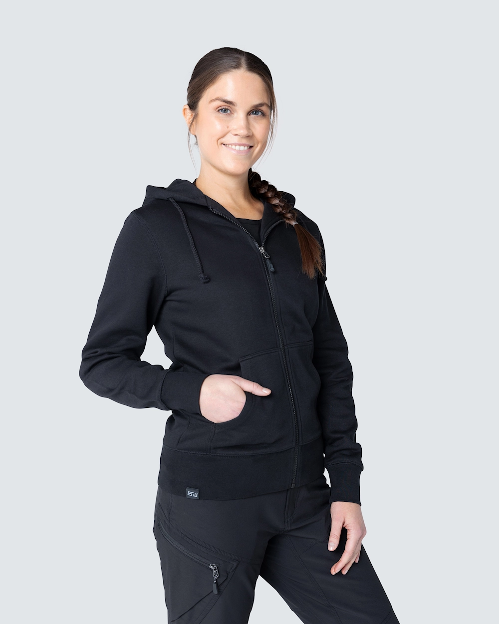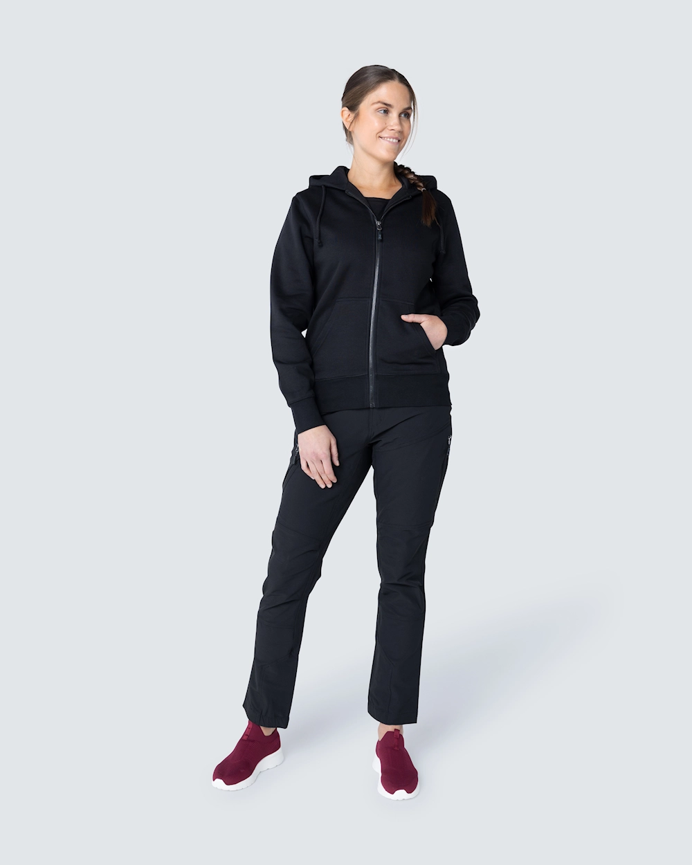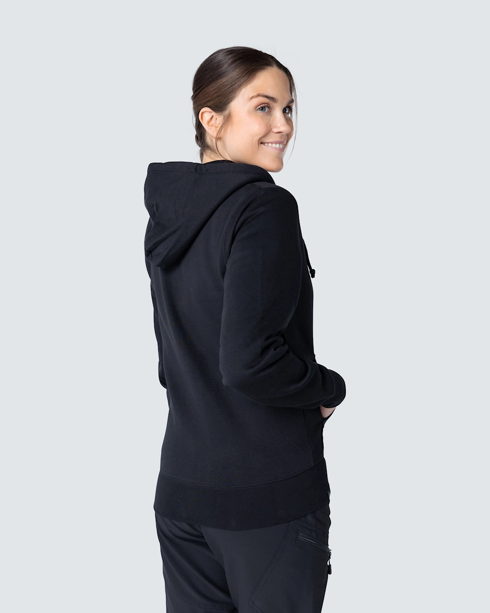 Muotoiltu naisten collegetakki. Kaksi kangaskerrosta hupussa ja kaksi etutaskua. Elastinen resori kauluksessa, hihansuissa ja helmassa.