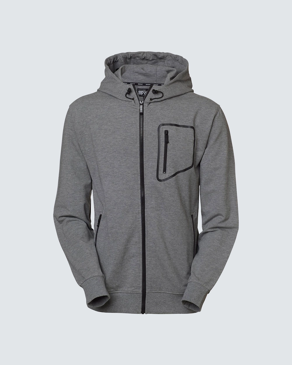 Collegetakki joustavasta neuletrikoosta, jonka sivutaskuissa ja rintataskussa tehostevärinen vetoketju ja ketjussa logovetimet. Hupussa korkea kaulanosuus sekä nyöri, jonka avulla voi säätää hupun etureunaa.
