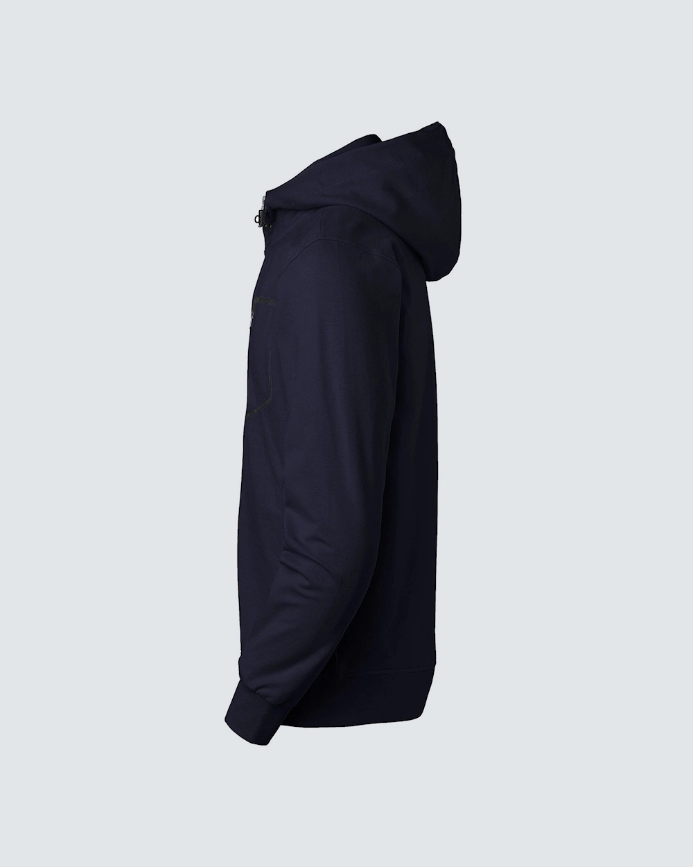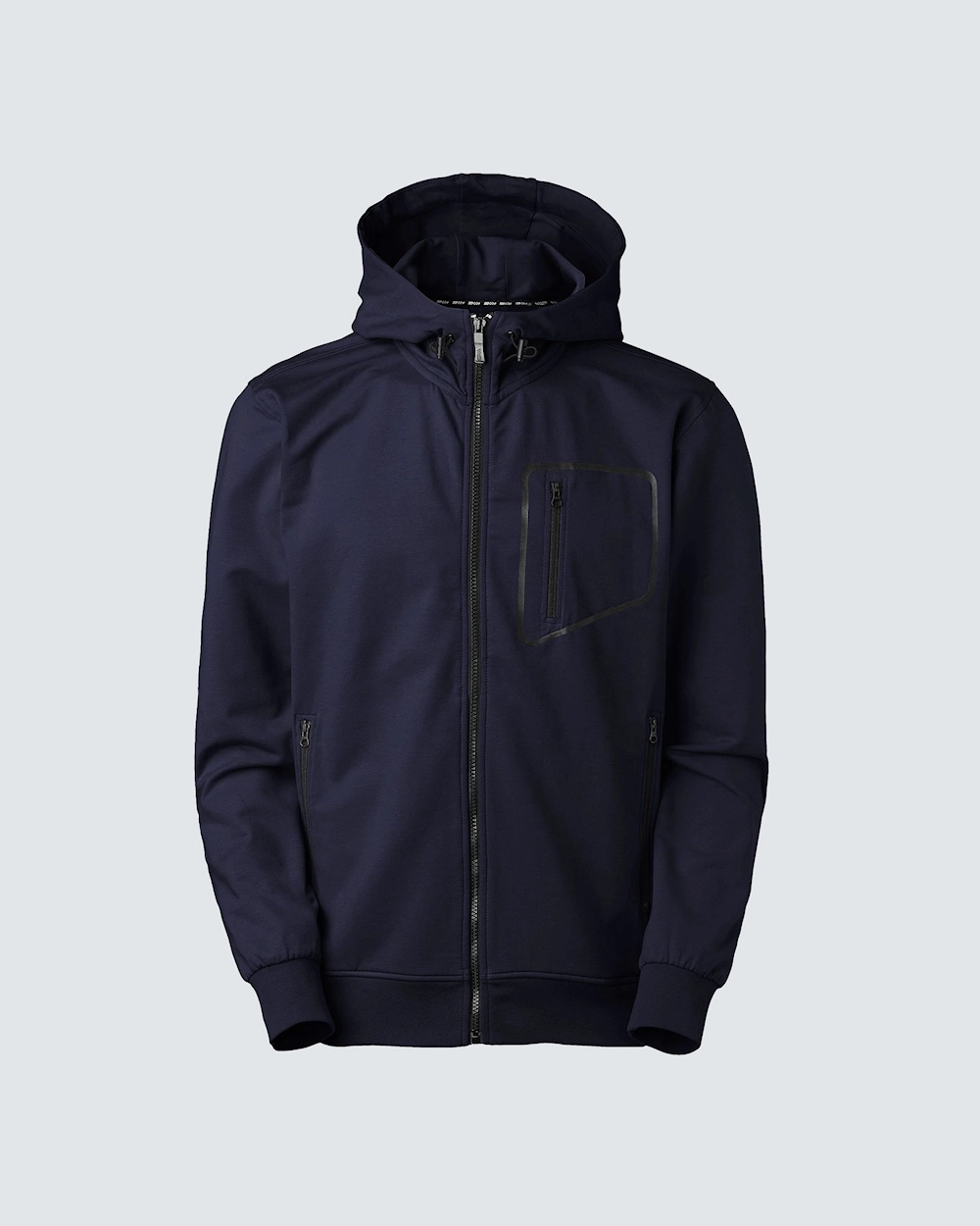 Collegetakki joustavasta neuletrikoosta, jonka sivutaskuissa ja rintataskussa tehostevärinen vetoketju ja ketjussa logovetimet. Hupussa korkea kaulanosuus sekä nyöri, jonka avulla voi säätää hupun etureunaa.