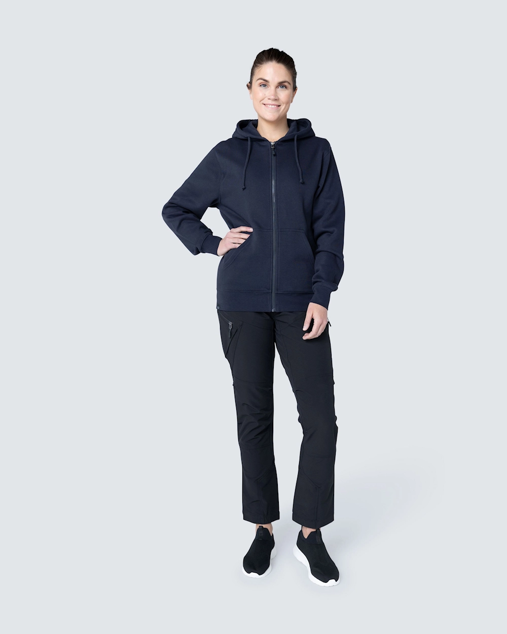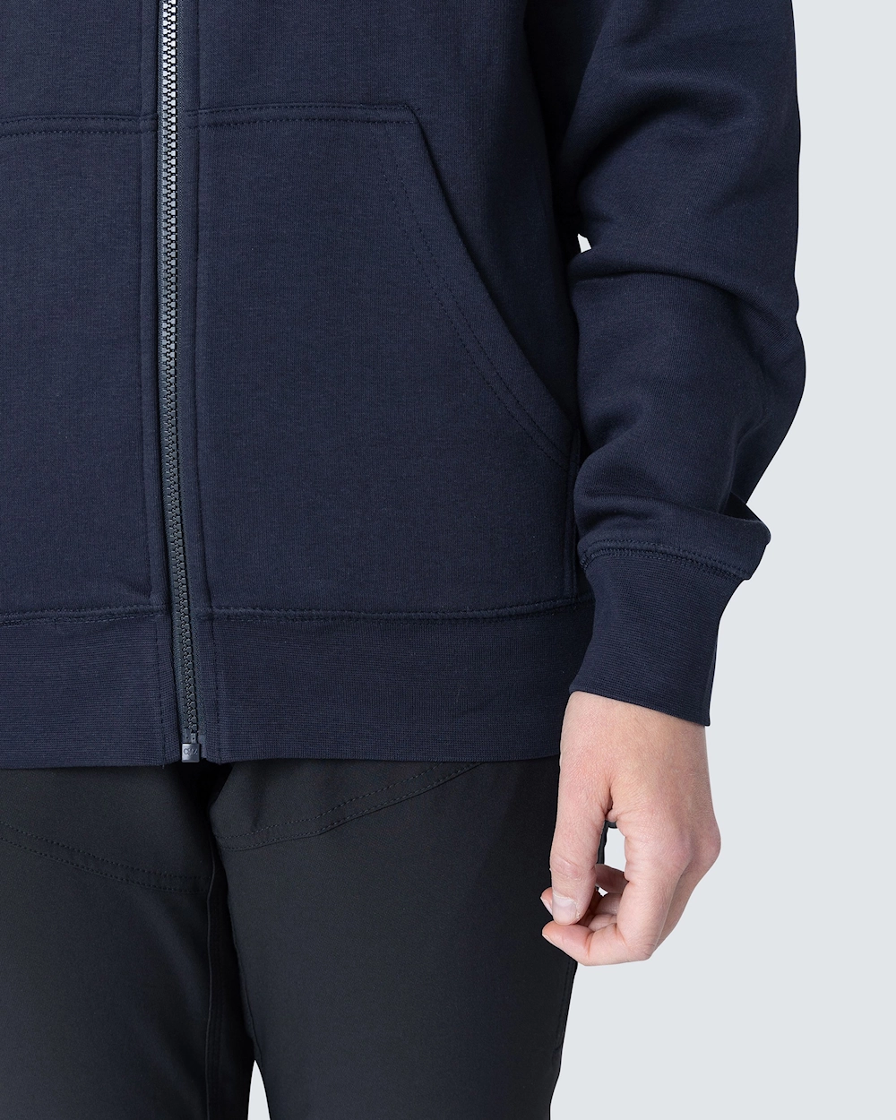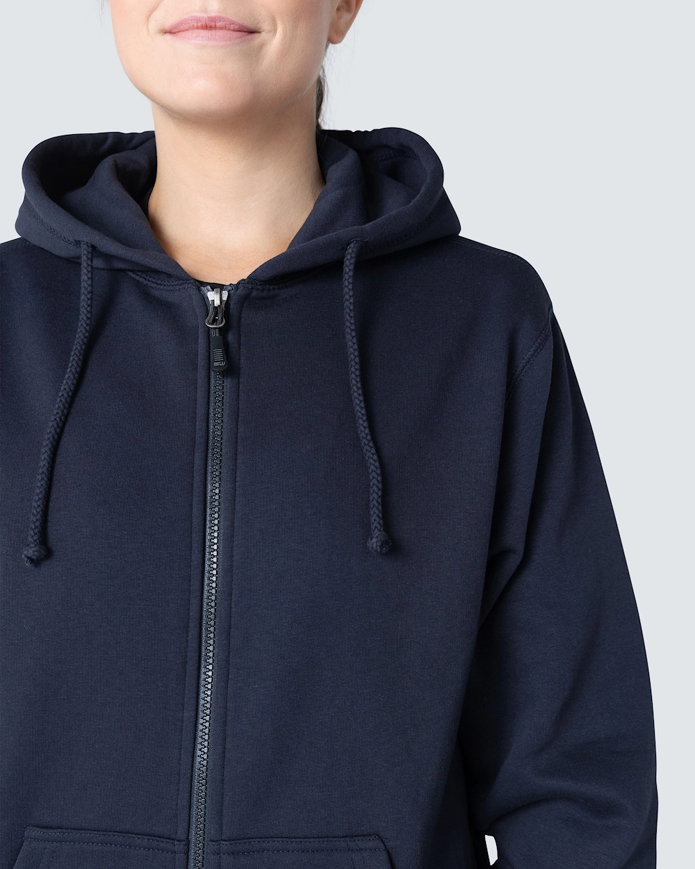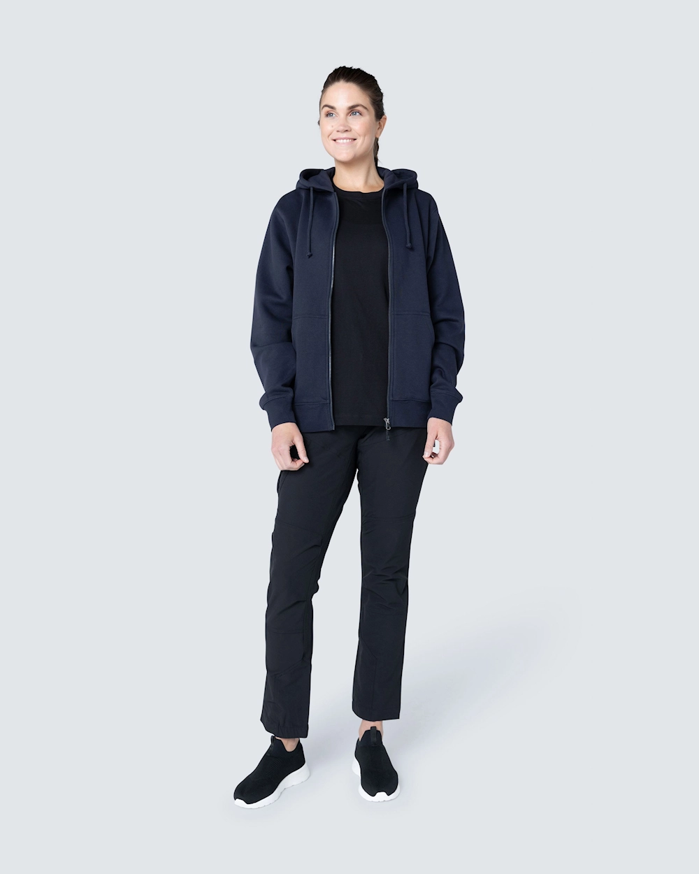Collegetakki, jossa kaksinkertainen kangaskerros hupussa ja kaksi etutaskua. Joustava resori helmassa ja hihansuissa.