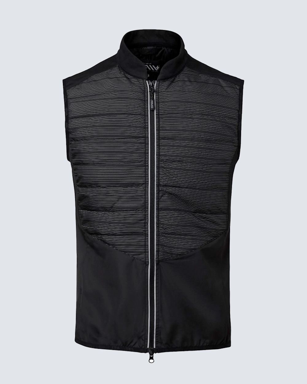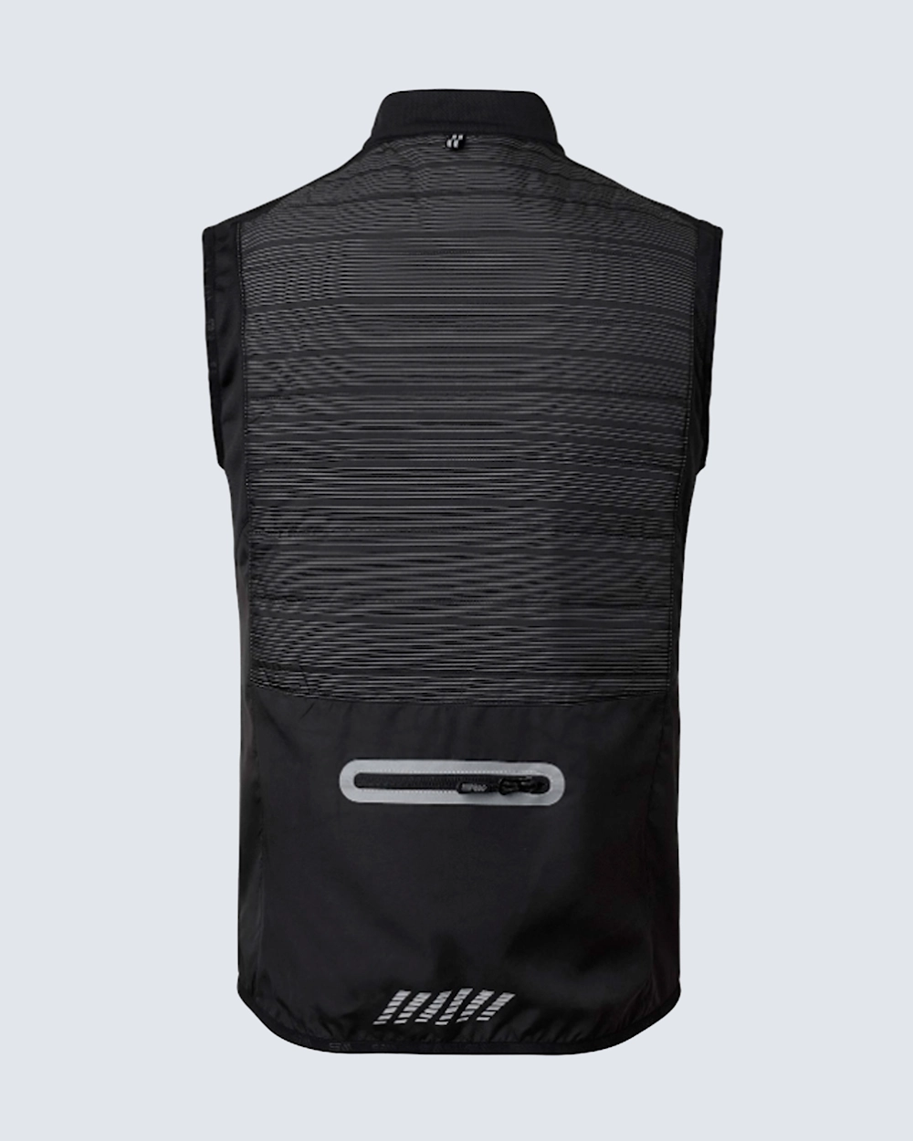 Kevyesti topattu treeniliivi. Sivuissa tuulettavaa mesh-kangasta. Edessä kaksisuuntainen heijastava vetoketju ja takana vetoketjullinen tasku.