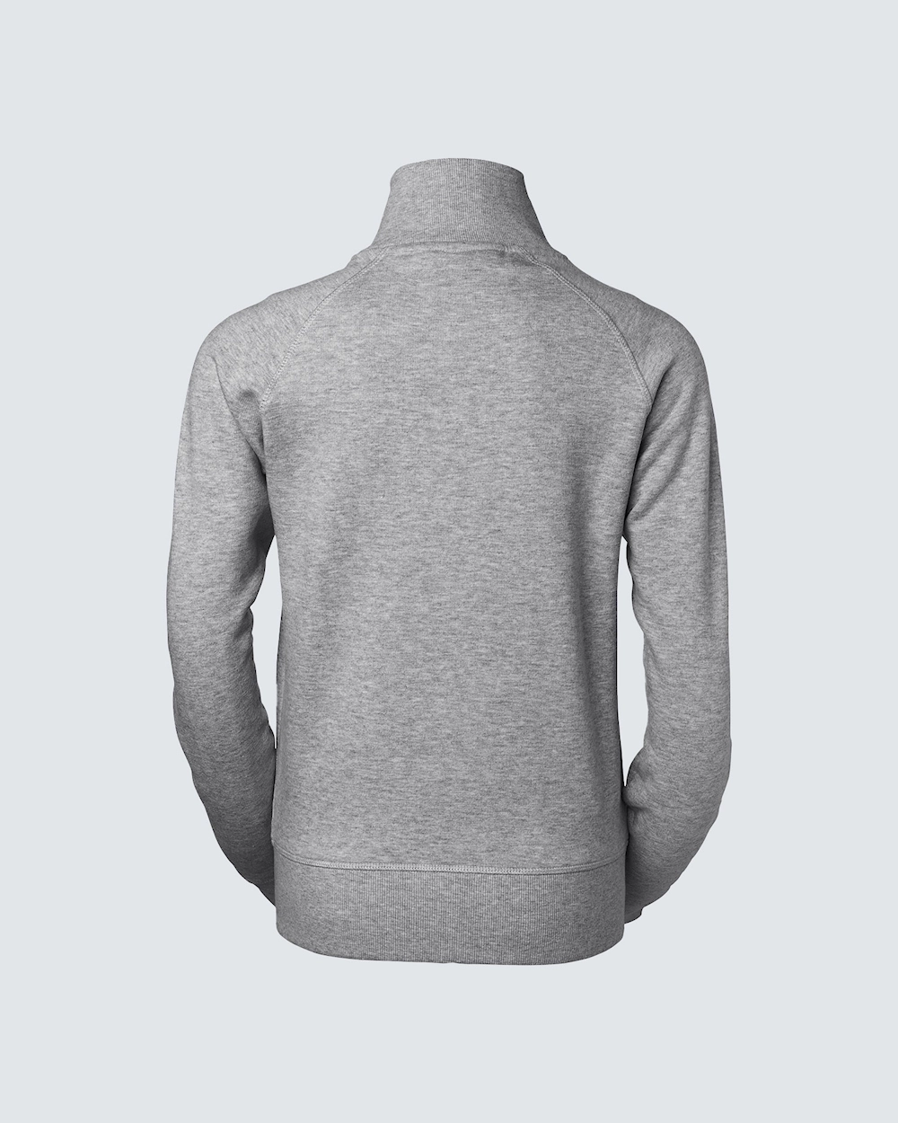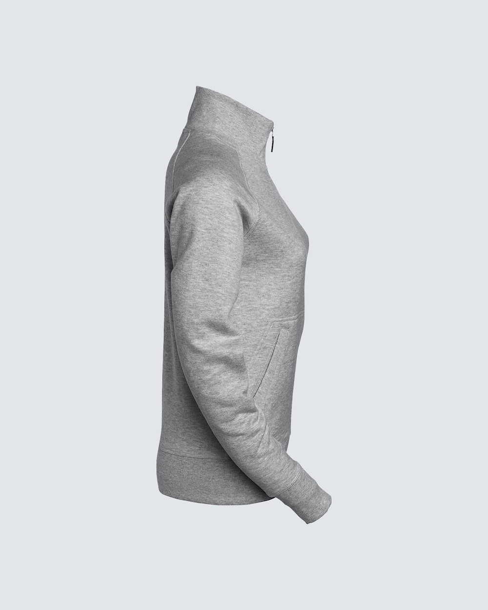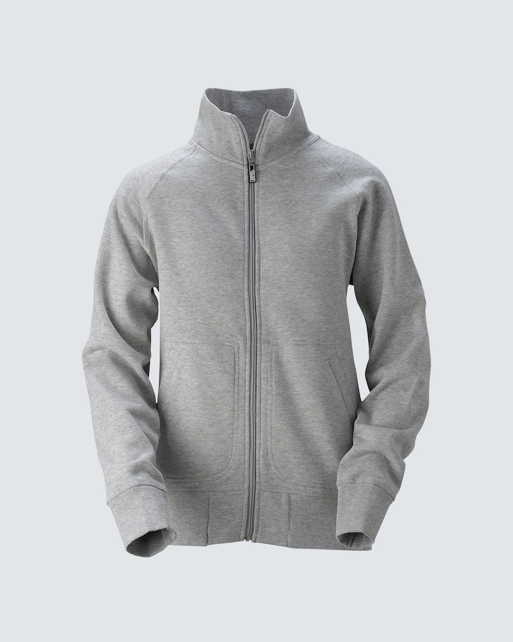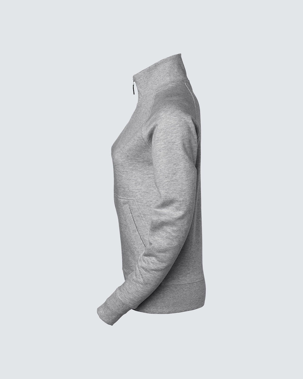 Muotoiltu naisten collegetakki vetoketjulla. Harjattu sisäosa ja raglanhihat. Elastinen resori kauluksessa, hihansuissa ja helmassa. Koristeompeleet etutaskujen ympärillä.