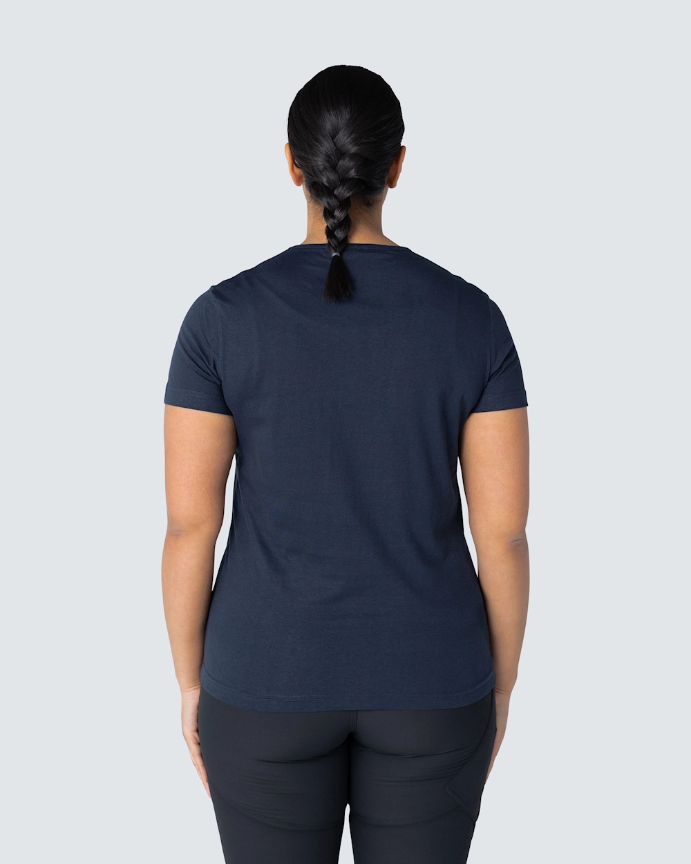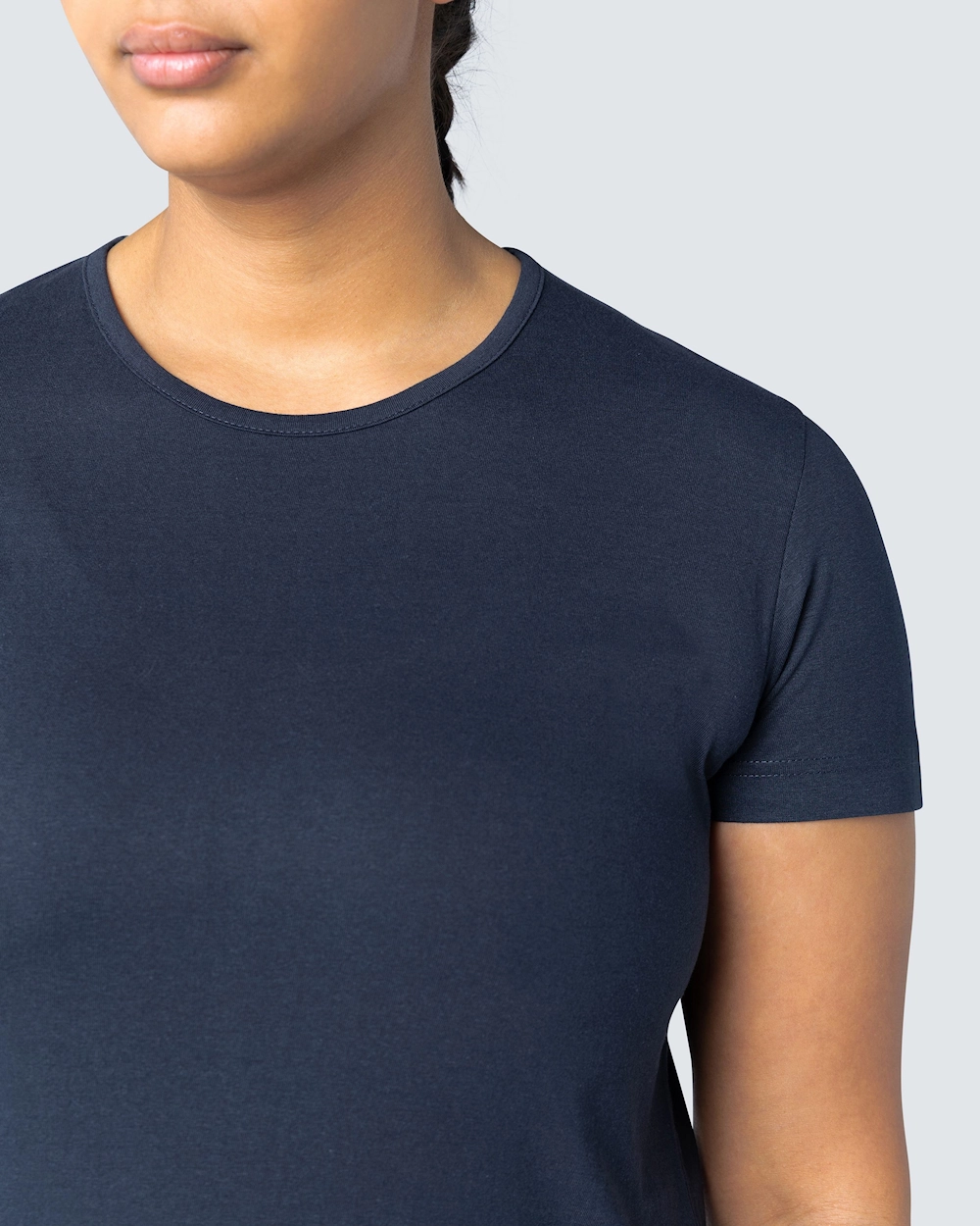 T-paita silikonipestyä single jersey puuvillaa. Vartalonmyötäinen naisten malli, jossa kanttinauhallinen pääntie.