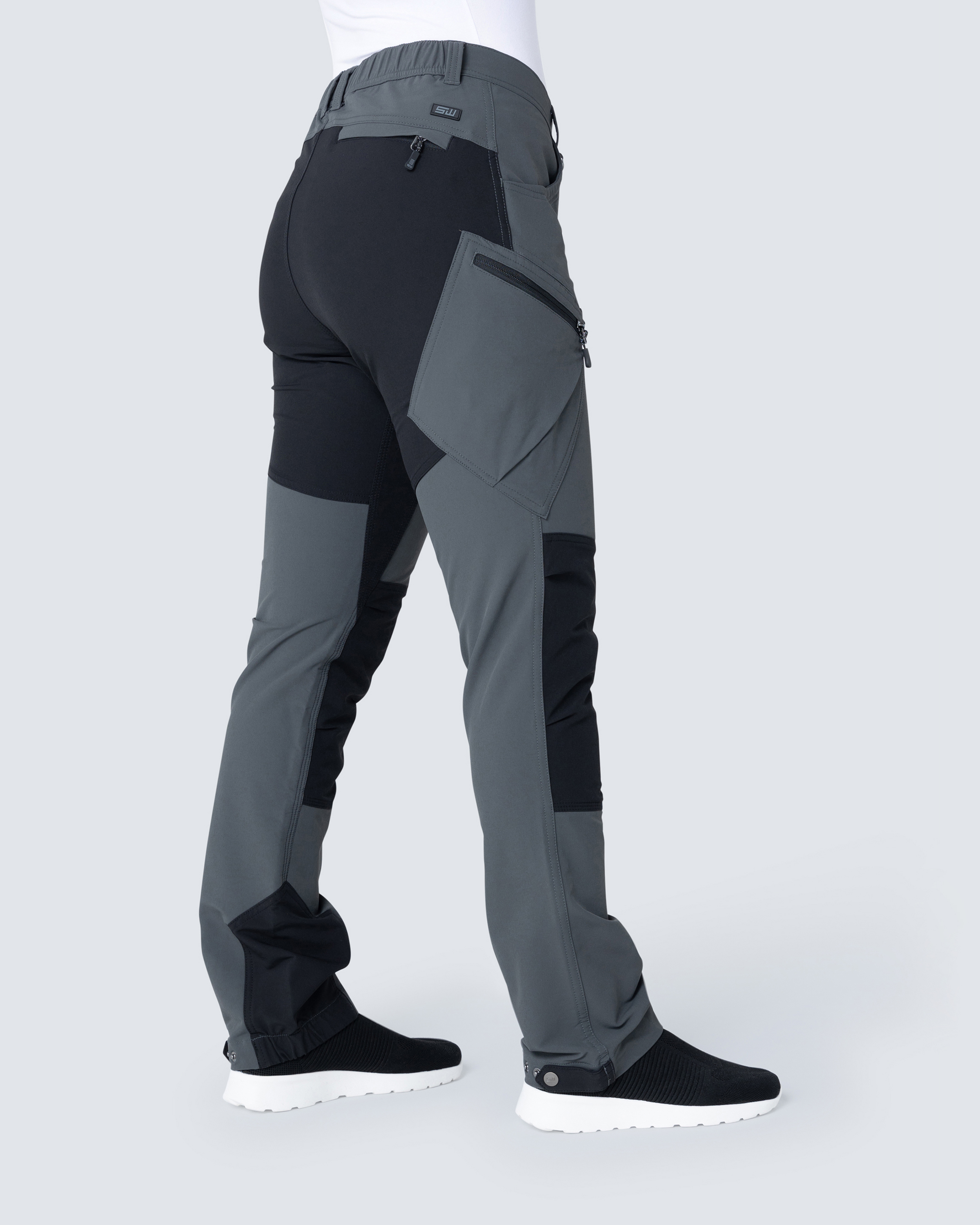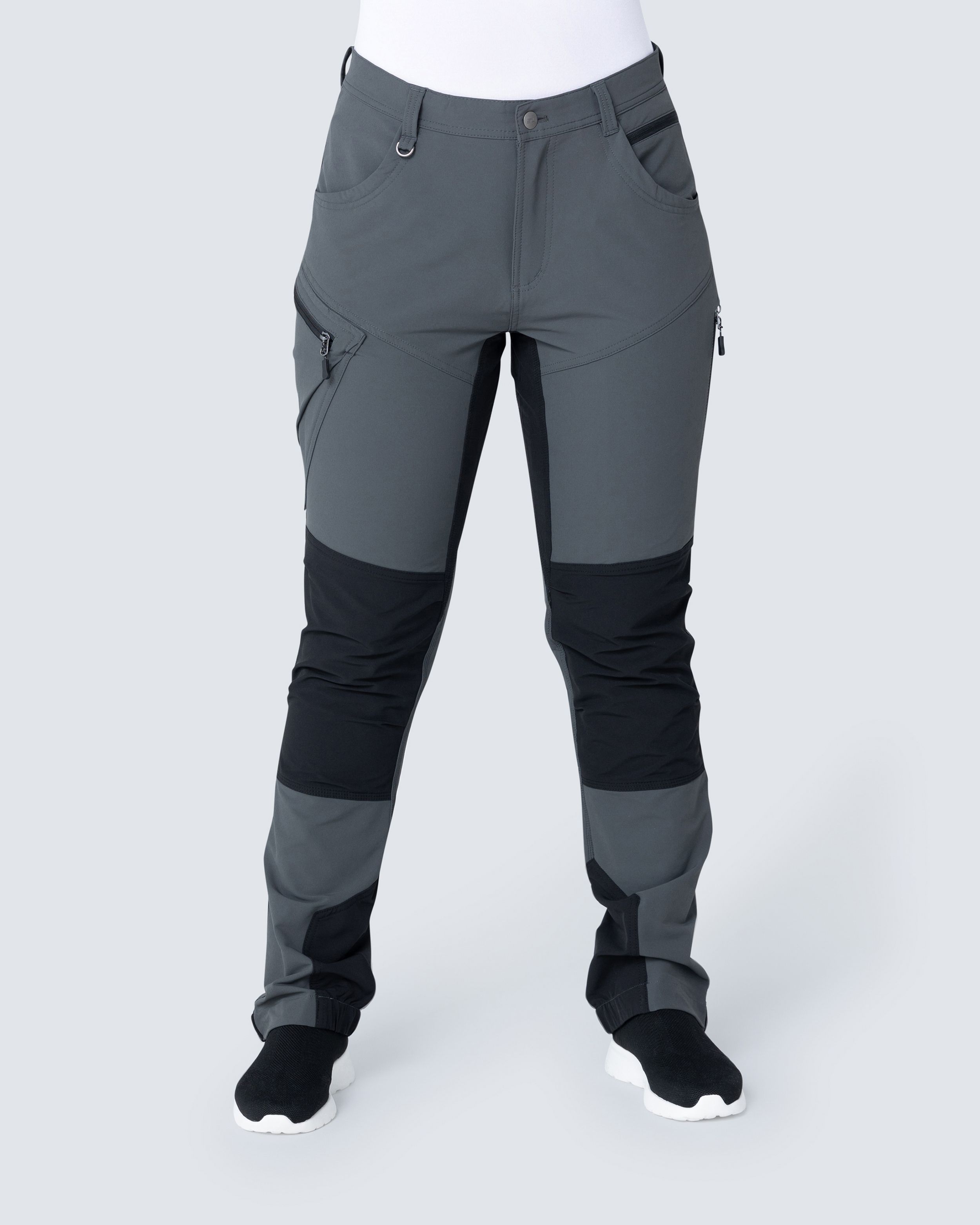 Käytännölliset ja mukavat naisten 5-taskun hybridhousut, jonka joustava materiaali antaa parhaan liikkuvuuden. Reisitaskujen ja takataskujen vetoketjuissa heijastimelliset vetimet. Lahkeensuiden napeilla voidaan säätää lahkeen leveyttä. Kuminen SW logo takakaarrokkeessa.