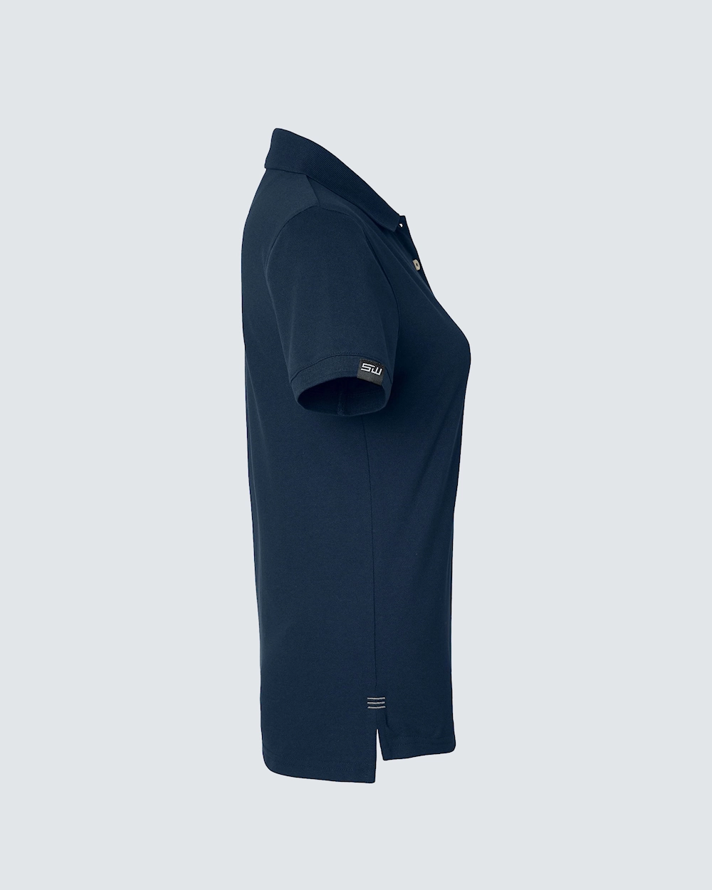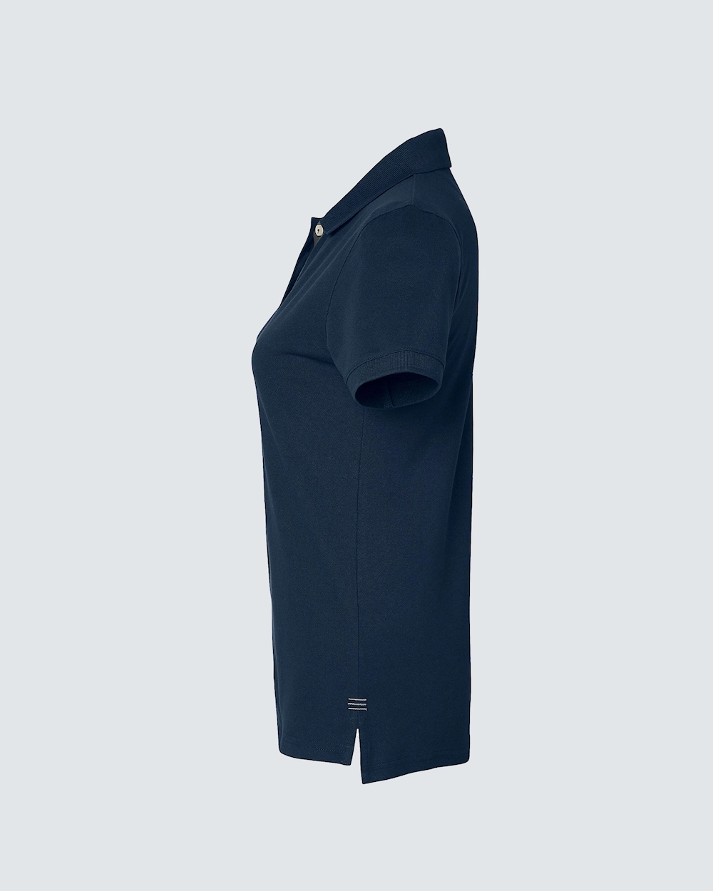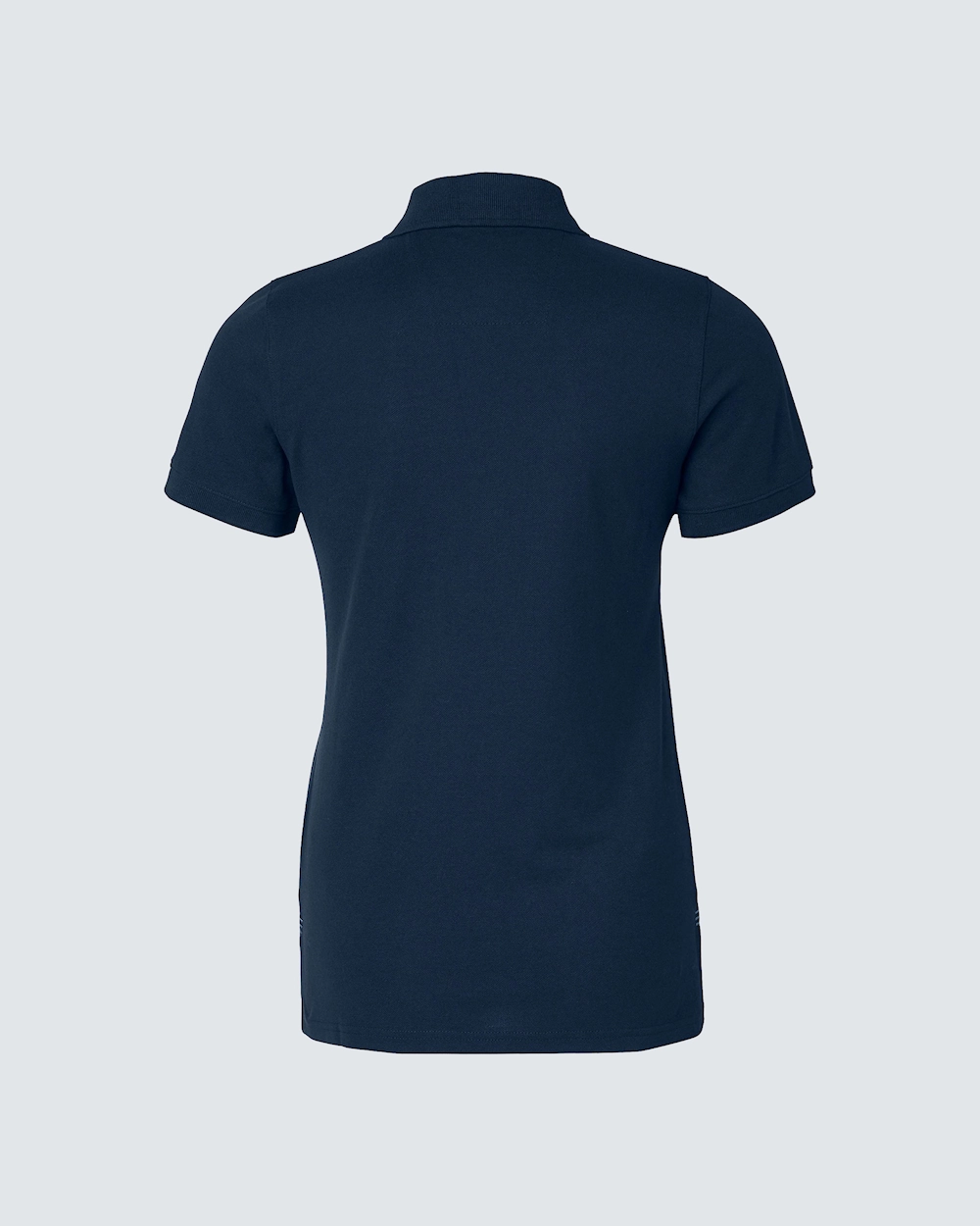 Naisten pikeepaita, jossa tehostevärinen nappilista ja valkoiset napit. Pitkähkö nappilista tekee puserosta naisellisen. Vahvistetut saumat. Tehostevärinen niskanauha sekä brodeeraus halkiossa. Pikeekaulus ja hihansuut.