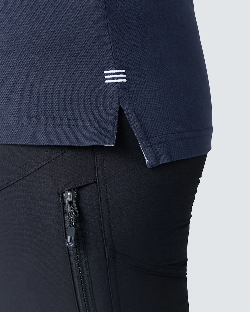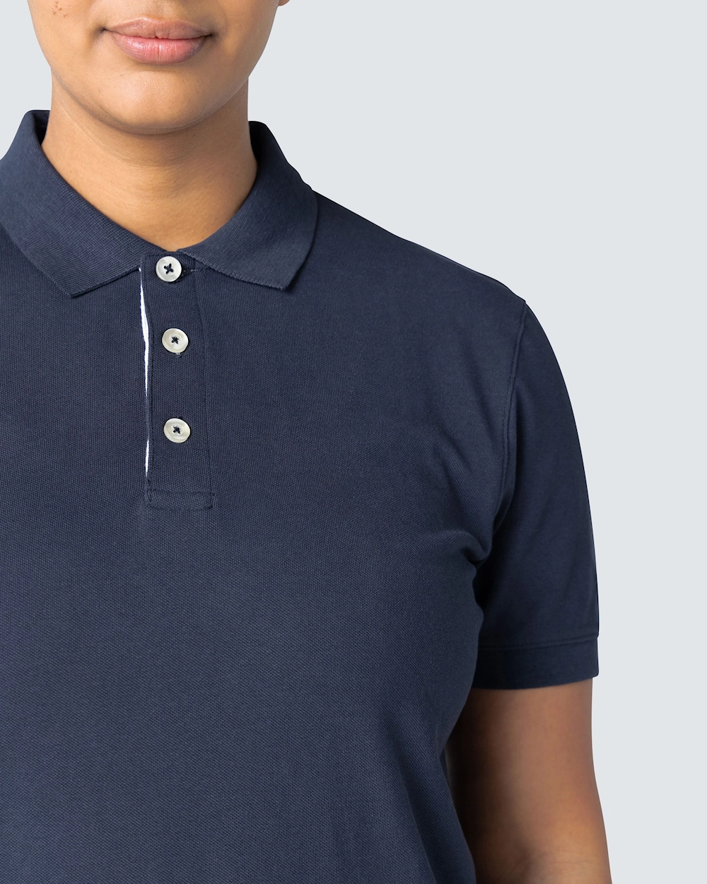 Pikeepaita, jossa tehostevärinen nappilista ja valkoiset napit. Vahvistetut saumat. Tehostevärinen niskanauha sekä brodeeraus halkiossa. Pikeekaulus ja hihansuut.