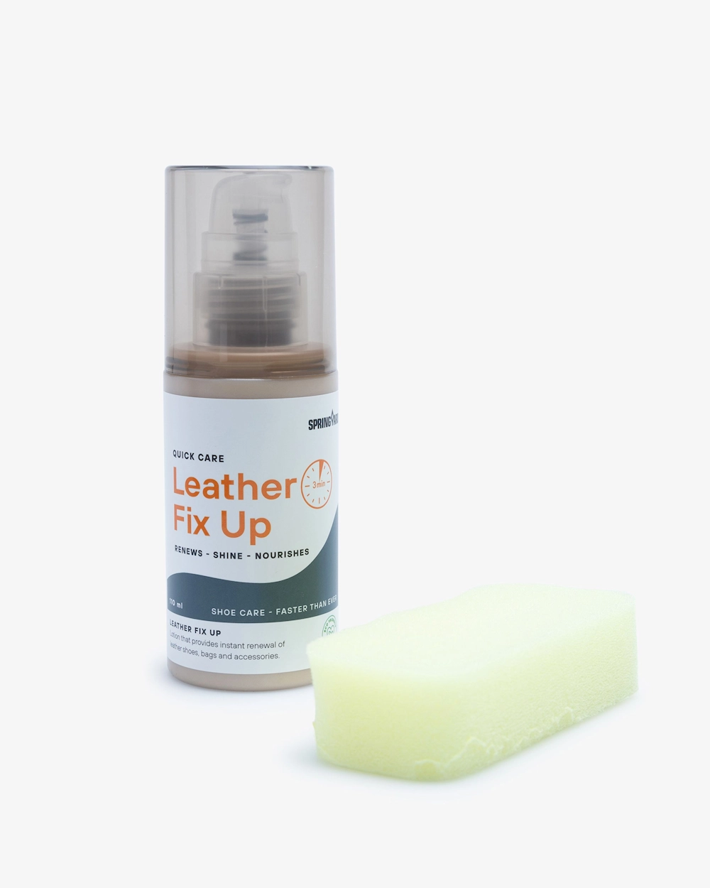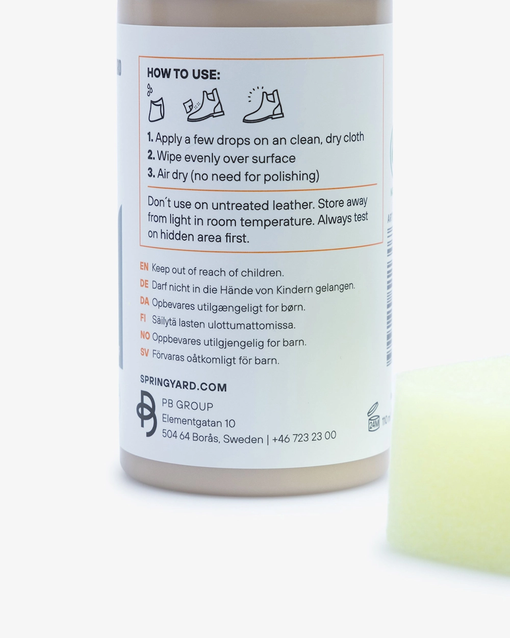 Pikakorjaus nahkakenkiisi! Tekee kengistä välittömästi uuden näköiset, kiiltävät ja pehmeät, sekä tarjoaa kevyen suojan tahroja ja kosteutta vastaan. Sopii käytettäväksi sileissä nahkakengissä, laukuissa ja asusteissa. Toimitetaan settinä, johon kuuluu levityssieni.