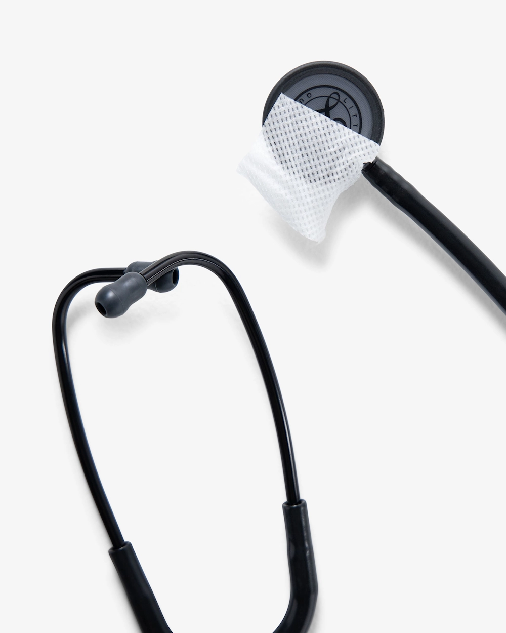 Stetoskoopin puhdistusliinat kätevässä kannellisessa pakkauksessa. Sisältää 70% isopropyylialkoholia, joka on ainoana 100% hyväksytty Littmann-stetoskooppien puhdistamiseen. Tämä puhdistuskeino on hyväksytty käytettäväksi sekä Littmannin ja, Gima, ADC:n että Color4care:n oman tuotemerkin stetoskooppien kanssa.