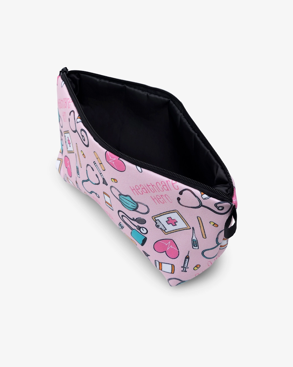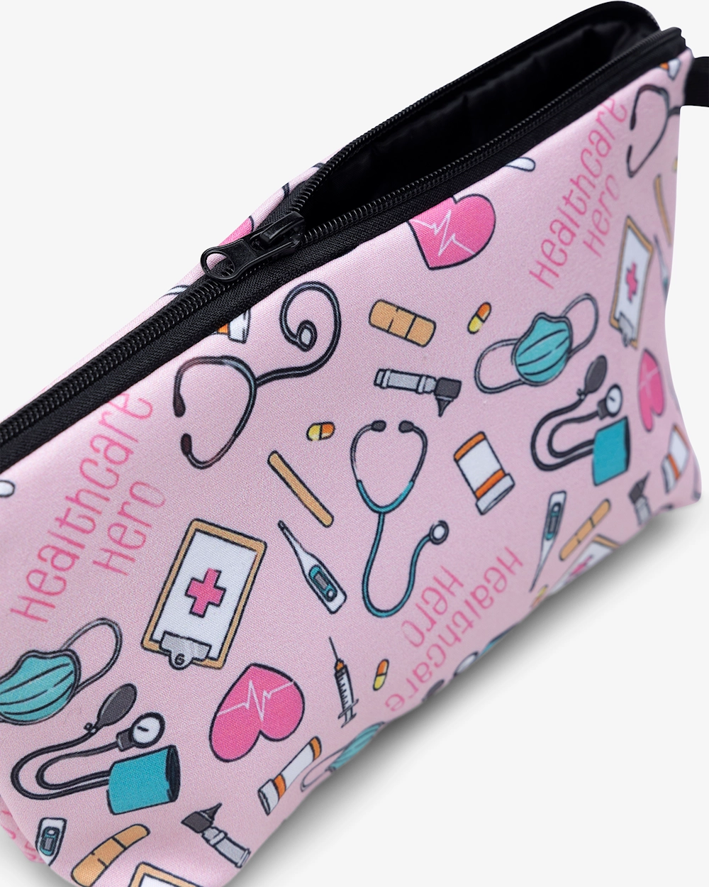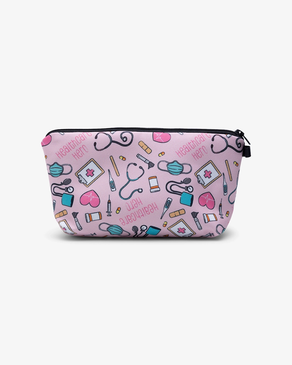 Tässä toiminnallisessa toalettilaukussa yhdistyvät tyyli ja käytännöllinen säilytystila tarvikkeillesi kaapissa tai laukussa. Kaksipuolisella painatuksella varustettu laukku antaa sille persoonallisen ilmeen. Kevyesti pehmustettu lisäsuojaa varten ja kätevä vetoketju auki. Täydellinen terveydenhuollon ammattilaisille, jotka arvostavat toiminnallisuutta ja muotoilua jokapäiväisessä elämässä.