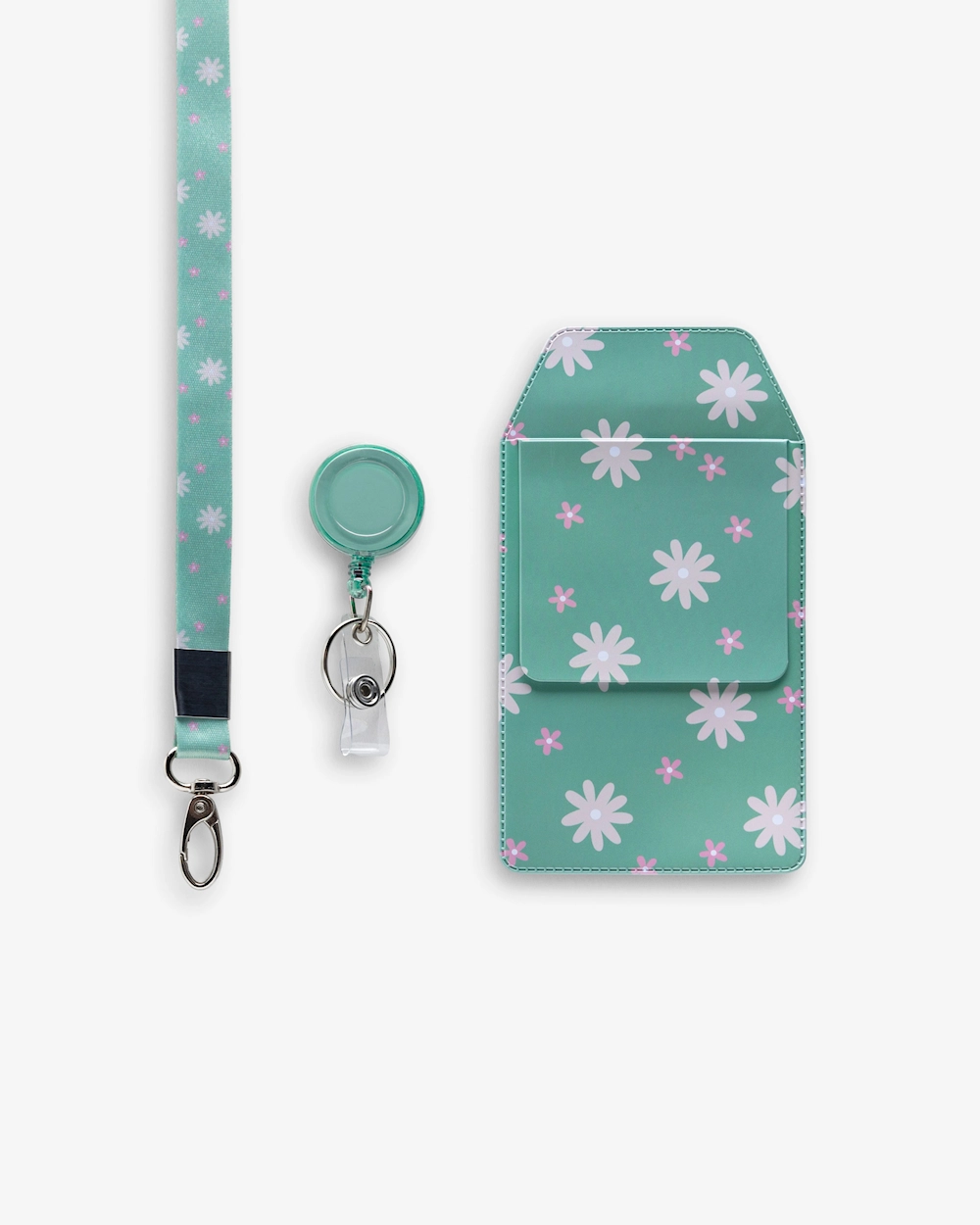 Raikasta työtyyliäsi Työtarvikesetillämme Kukat Minttu. Tämä kukkakuvion ja pyöreän vihreän jojon yhdistelmä luo modernin ja pirteän ilmeen. Mintunvihreä on väri, joka huokuu raikkautta ja rauhaa, täydellinen hoitoympäristöön. Setti varmistaa, että sinulla on täysi kontrolli kynistäsi, avaimistasi ja korteistasi, jotta voit keskittyä olennaiseen.